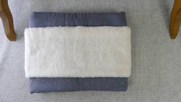 Couverture bébé personnalisée double gaze pois dorés et fausse fourrure Sherpa
