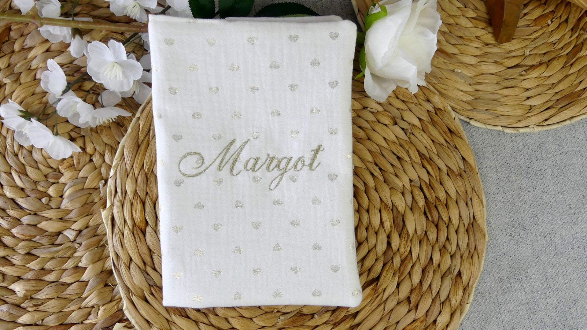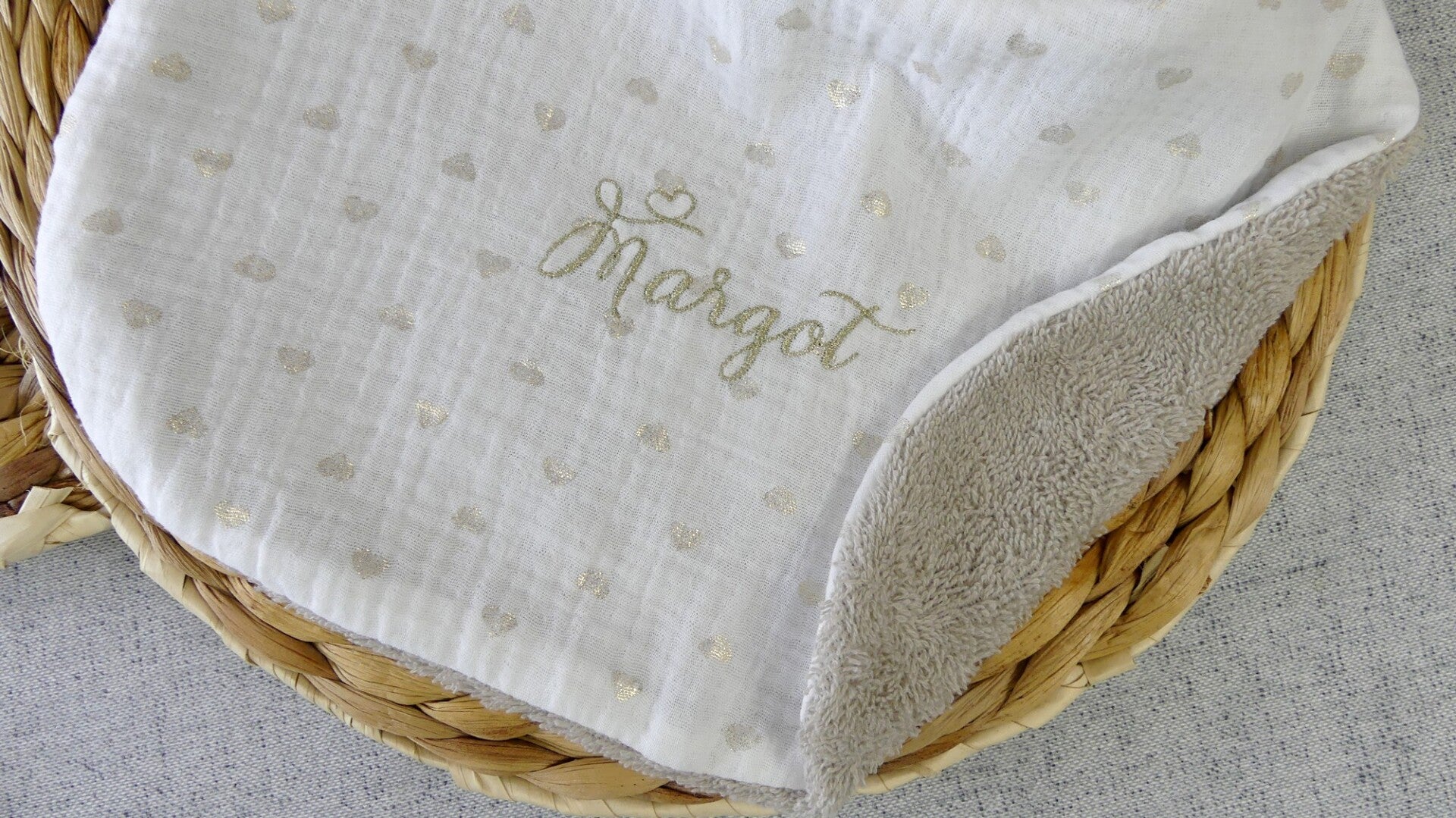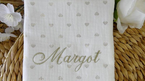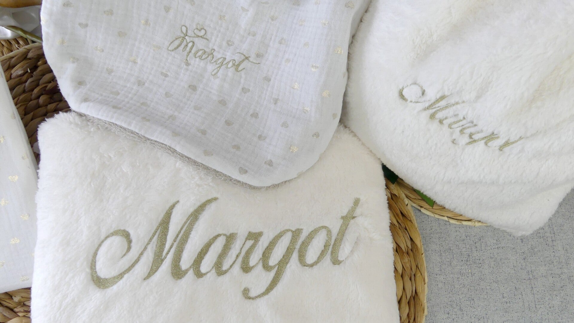 >> BRODERIE : toutes les personnalisations sont réalisées avec un fil métallique doré spécial brodeuse (lavable à 40°).