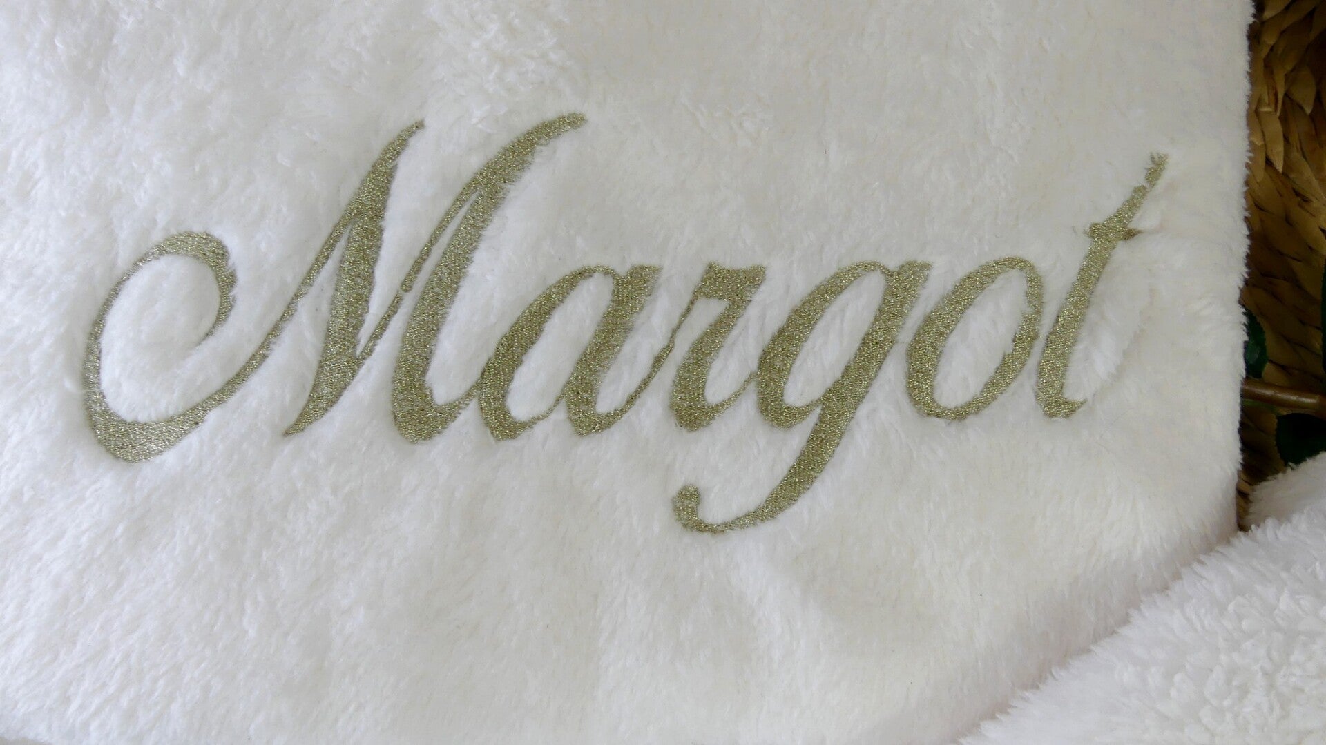 Toutes les personnalisations sont réalisées avec du fil doré spécial brodeuse.