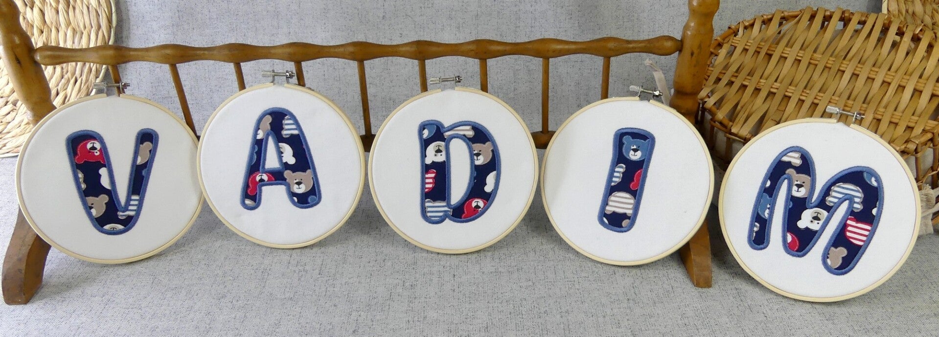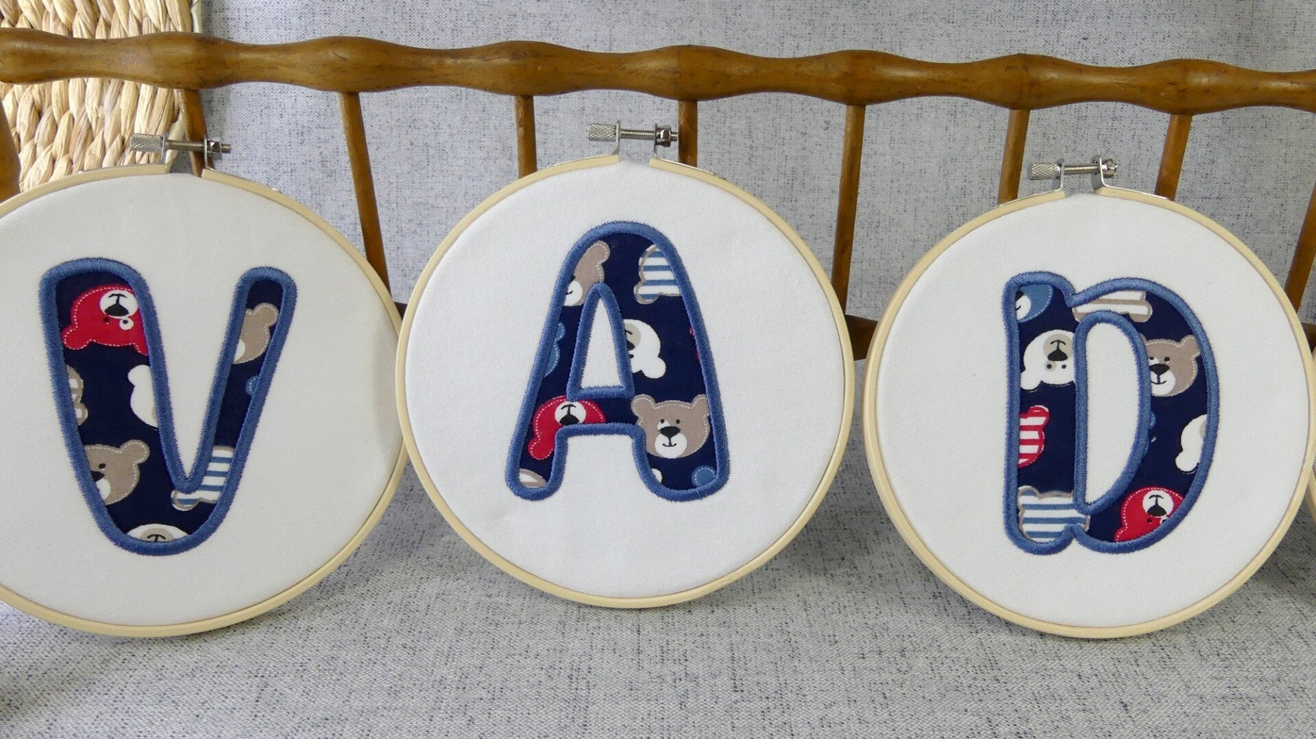- Cadre / Tambourin diamètre 15 cm pour décorer la chambre de bébé. Peuvent être accrochés au mur ou poser en déco sur un meuble. (variante du prix par rapport au nombre de lettres).