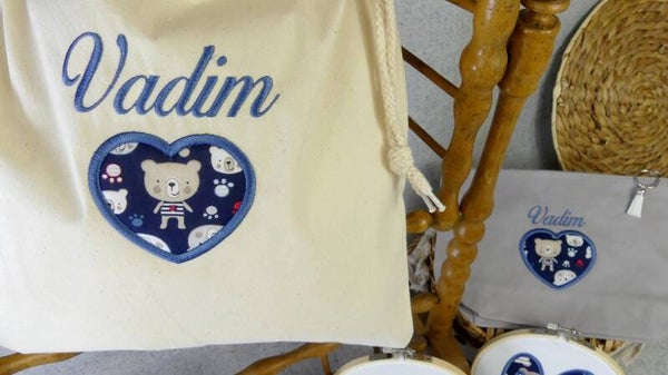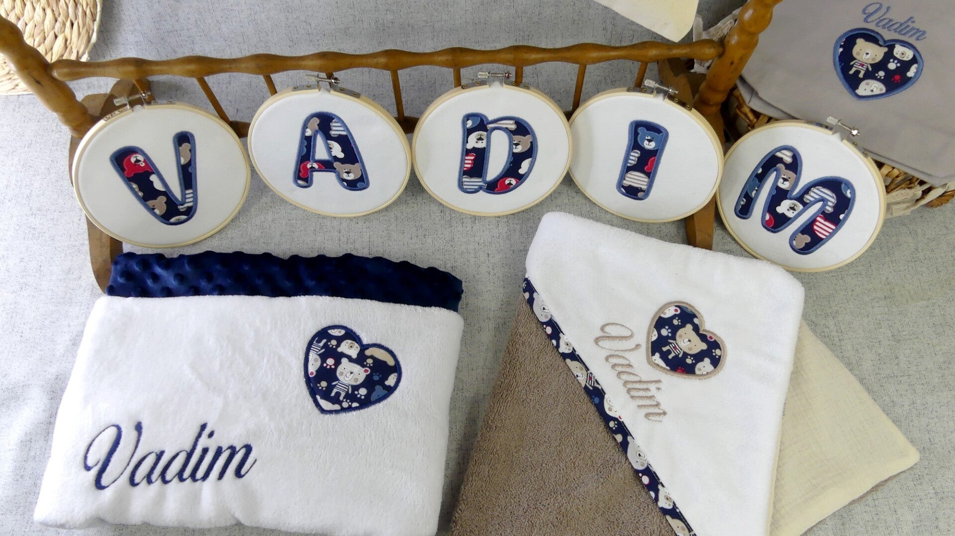 Coffret cadeau naissance personnalisé broderie prénom VADIM
