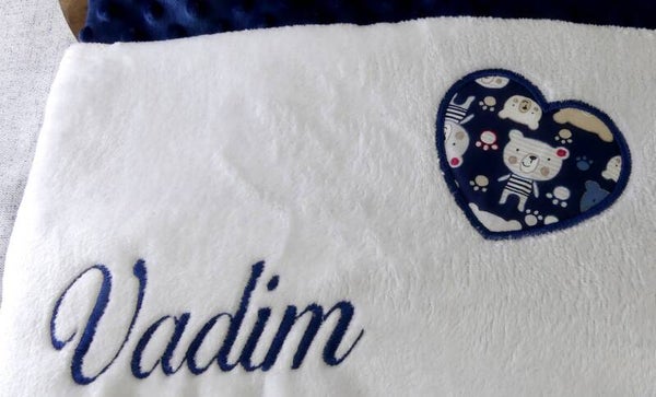 Face brodée : Polaire Minky Pilou doudou blanc.