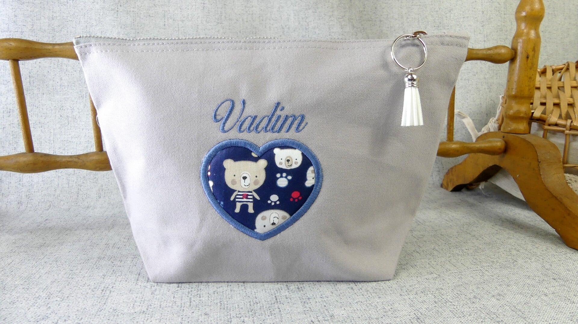 - Trousse grise en coton 28 x 19 x 10 cm avec sa breloque fantaisie.