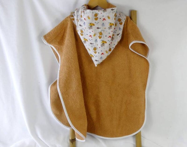 Ce poncho est réalisé en éponge bouclette 100% coton, la capuche est doublée, le prénom sera brodé en bas du poncho.
