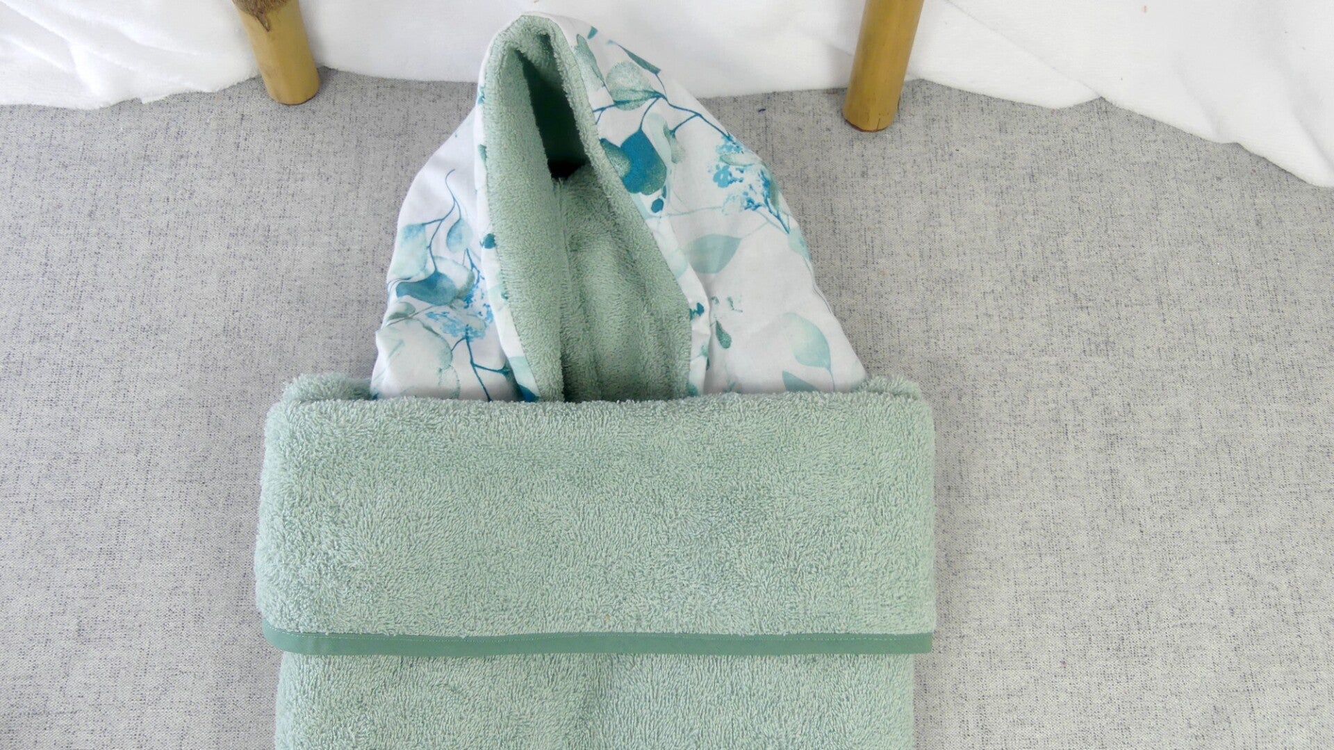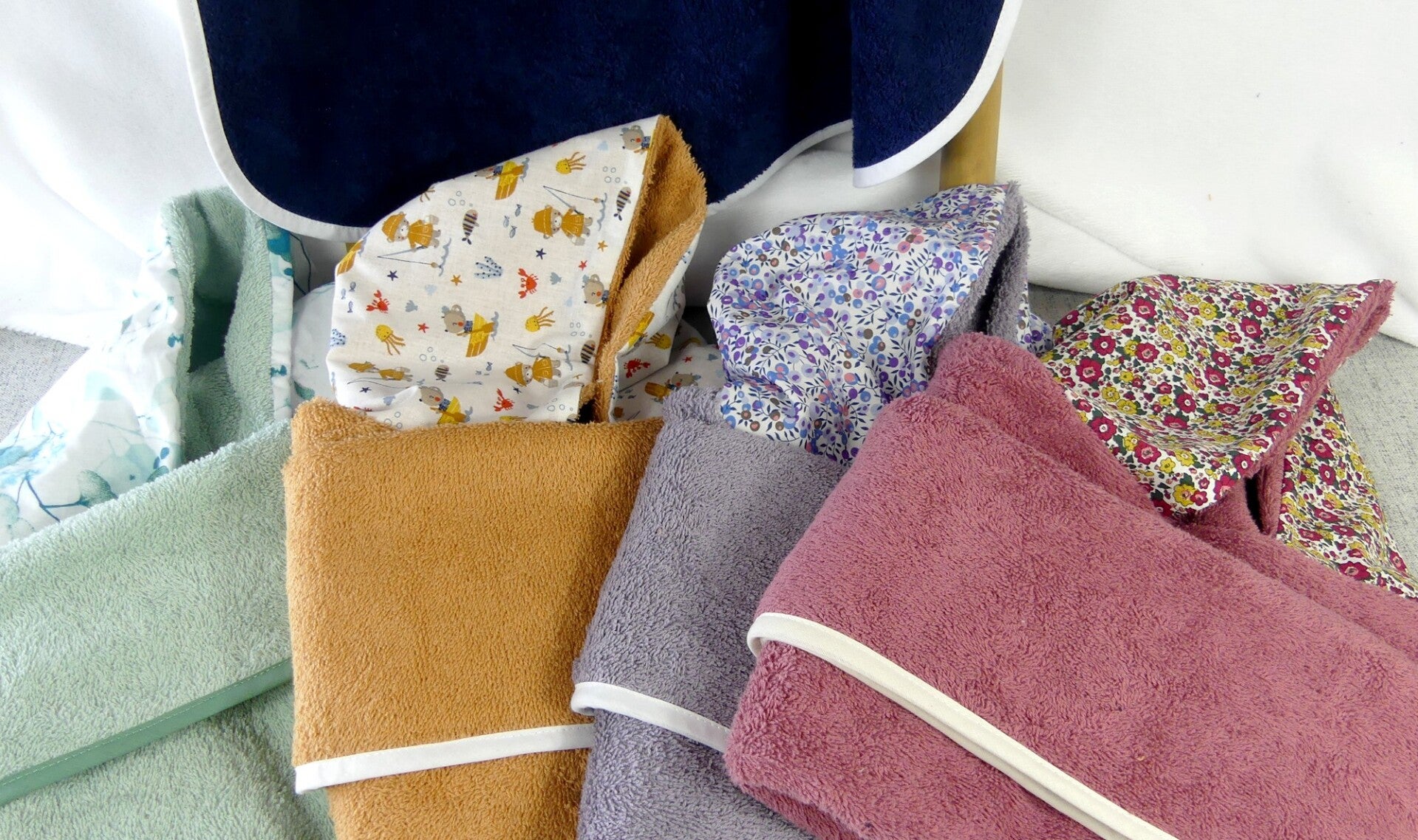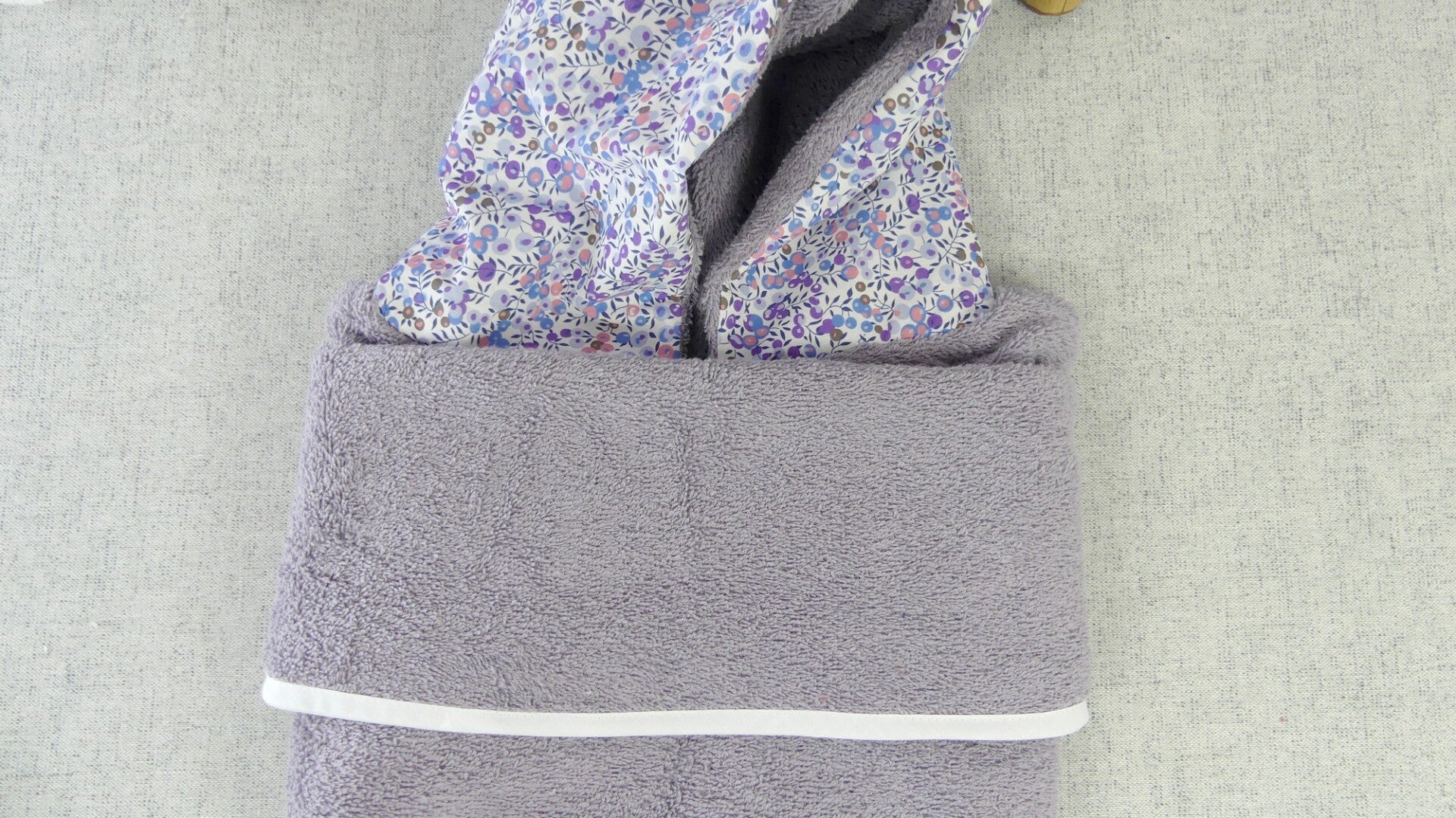La capuche est doublée en éponge bouclette coton à l'intérieur, et tissu coton fantaisie à l'extérieur.