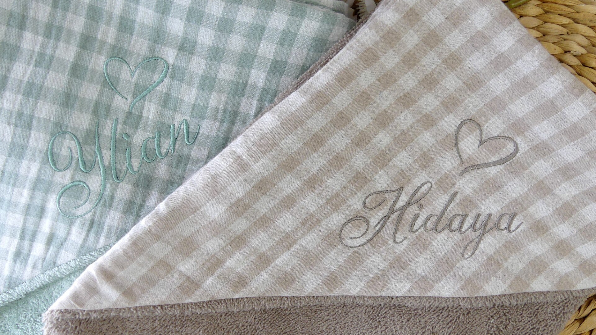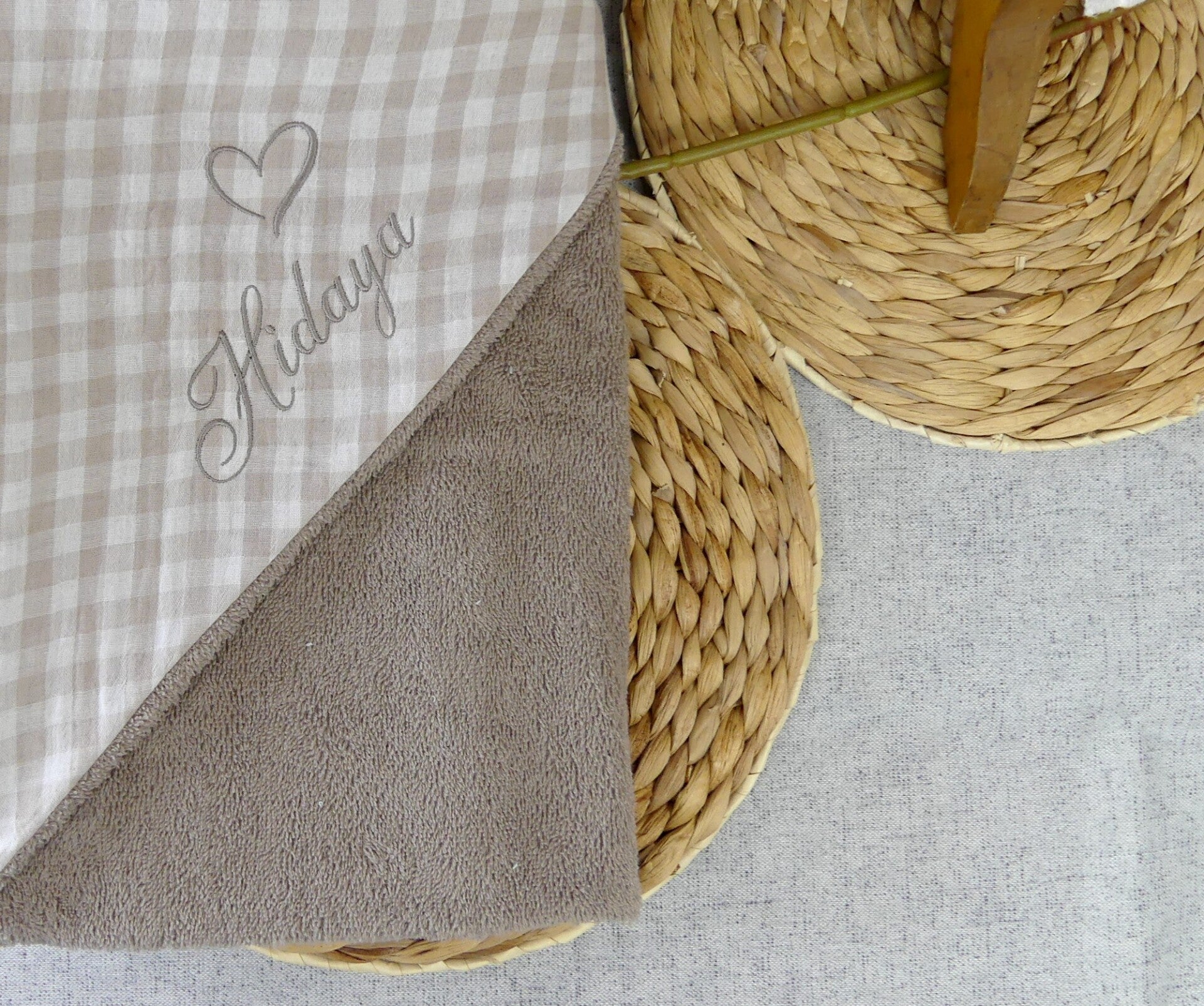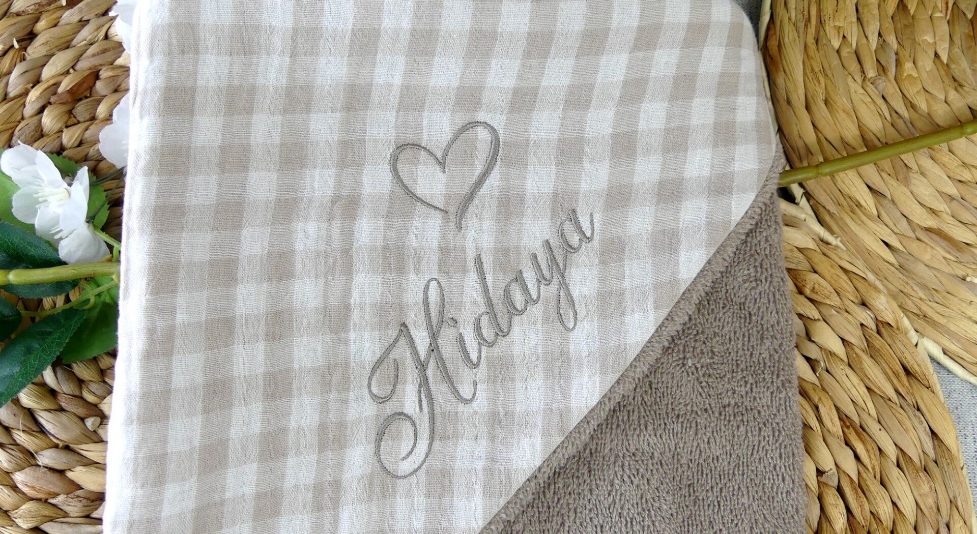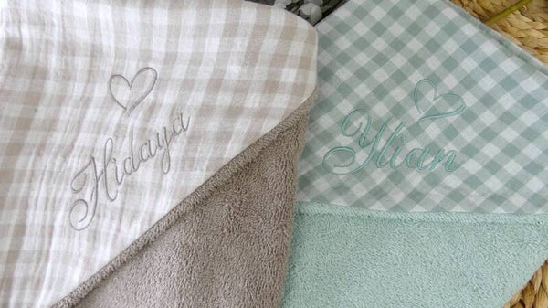 Cape de bain éponge et vichy coton personnalisé broderie prénom
