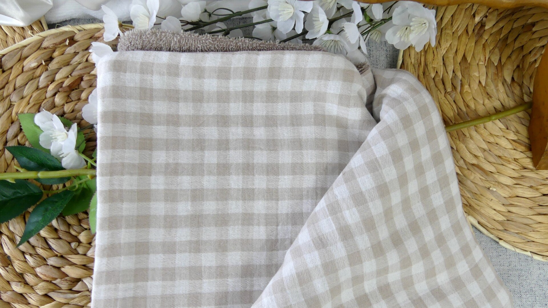 Cape de bains éponge et double gaze vichy 100 % Coton