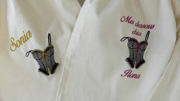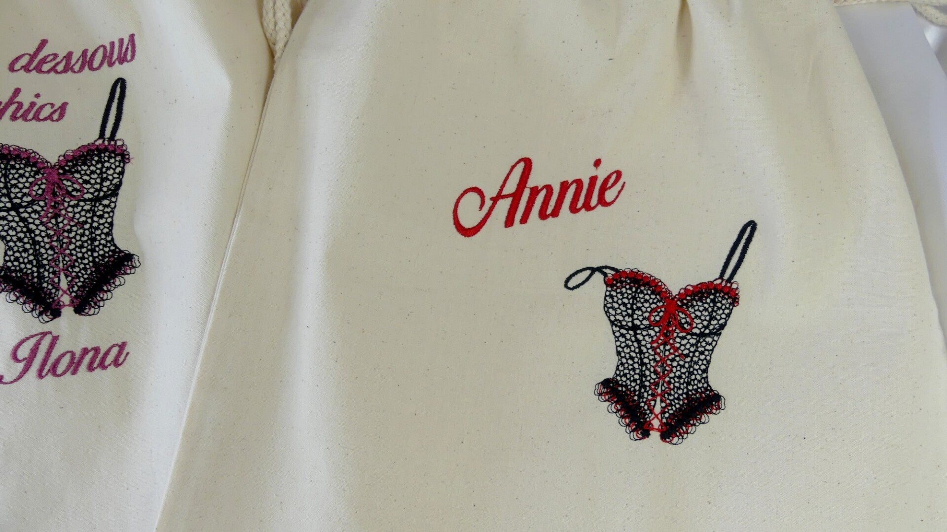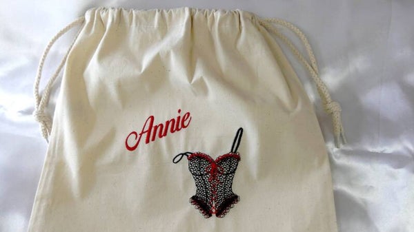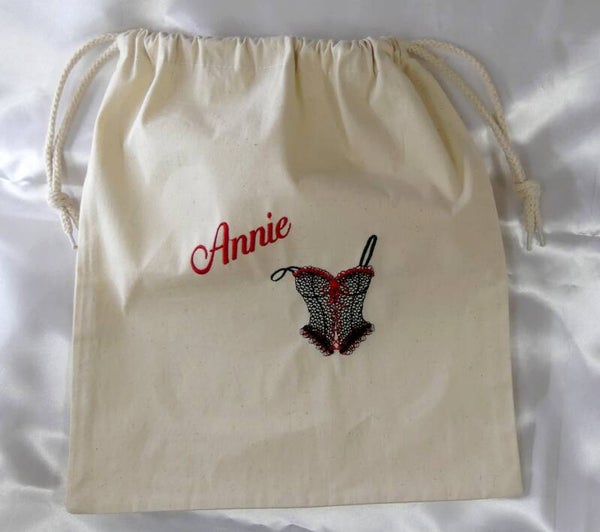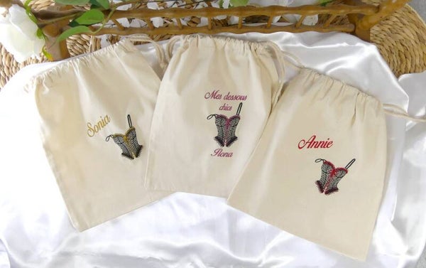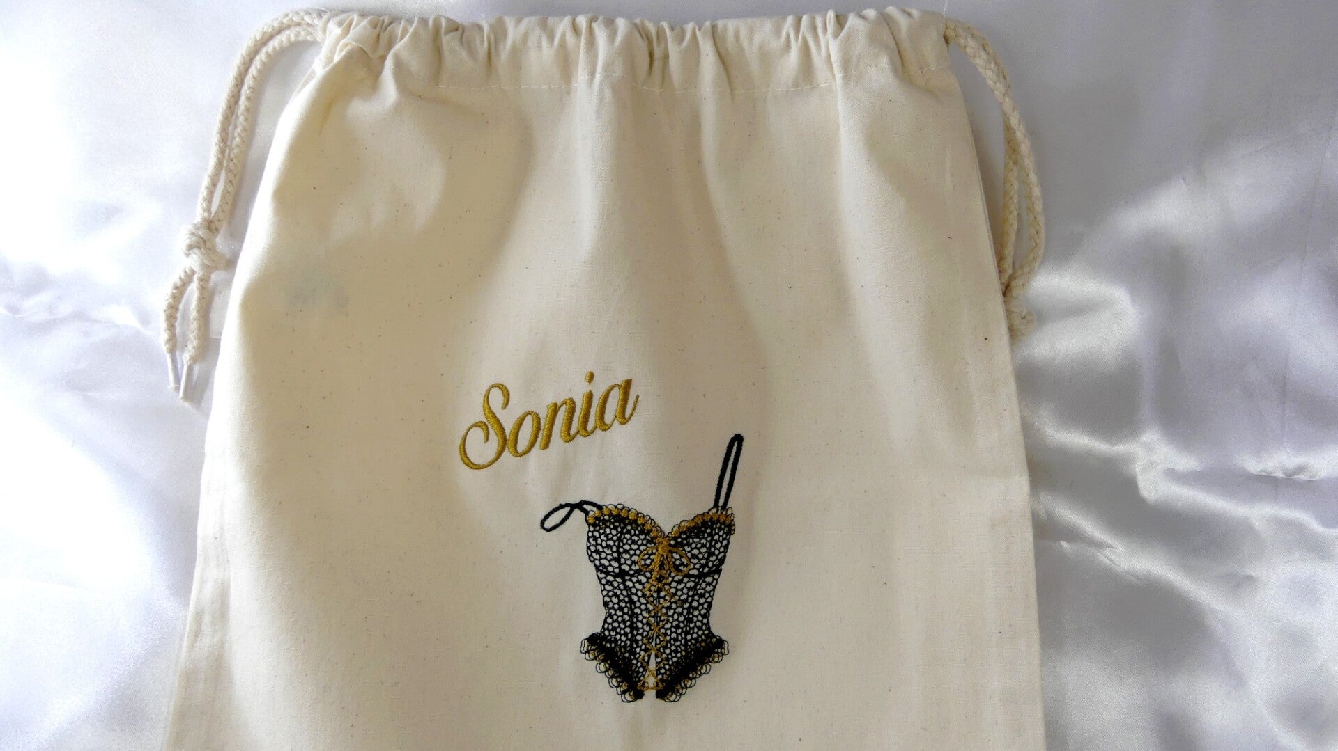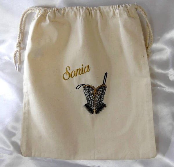 Sac à lingerie personnalisé brodé prénom et motif Guêpière femme