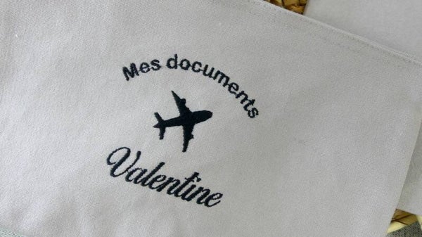 Pochette "Voyage" personnalisée en broderie