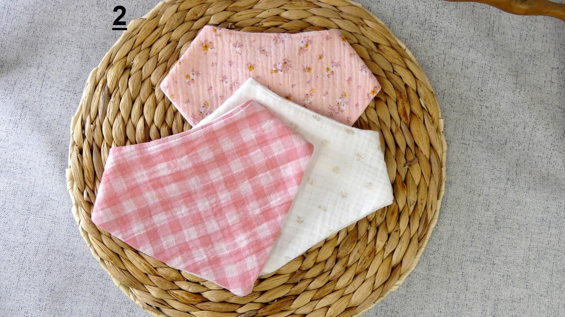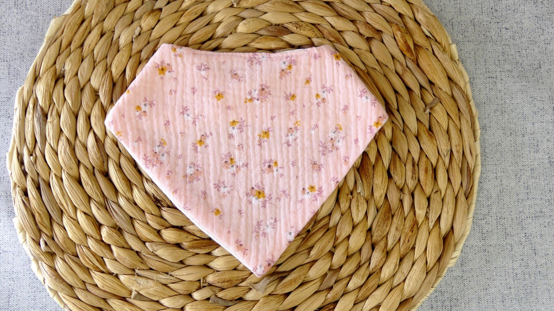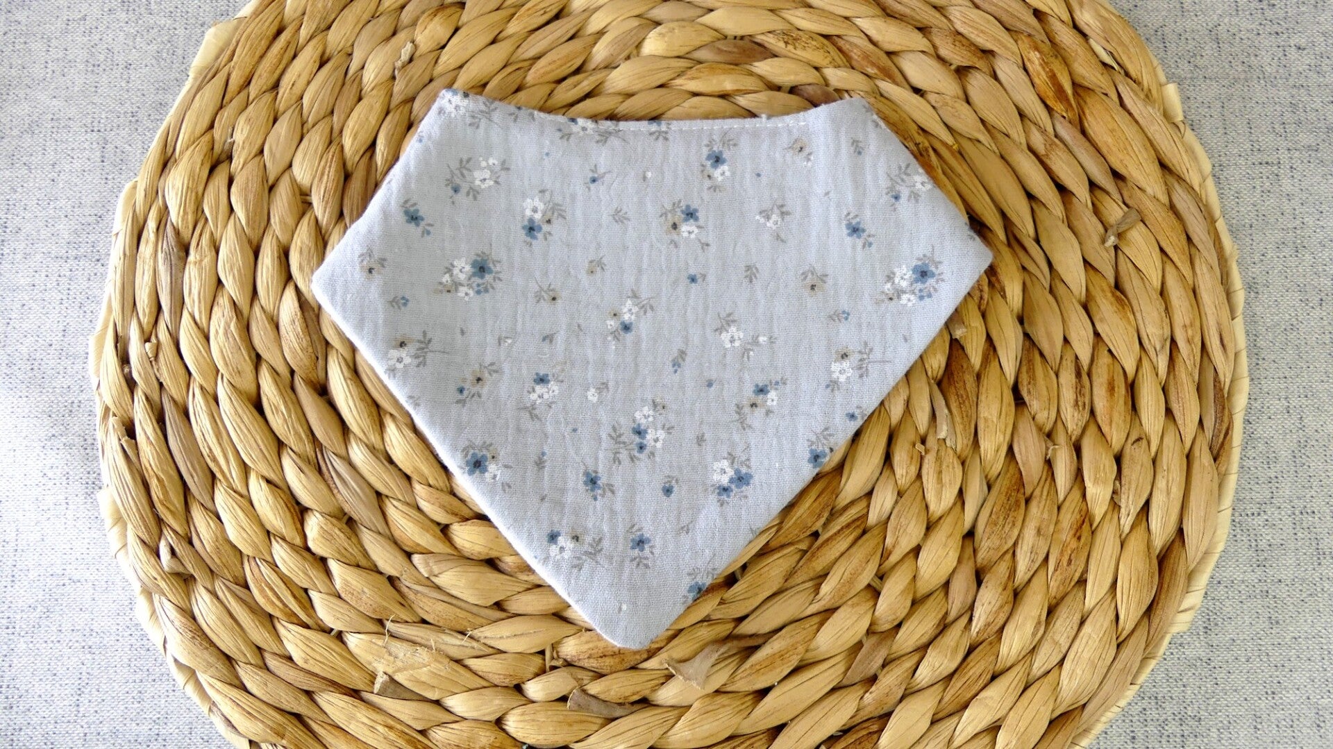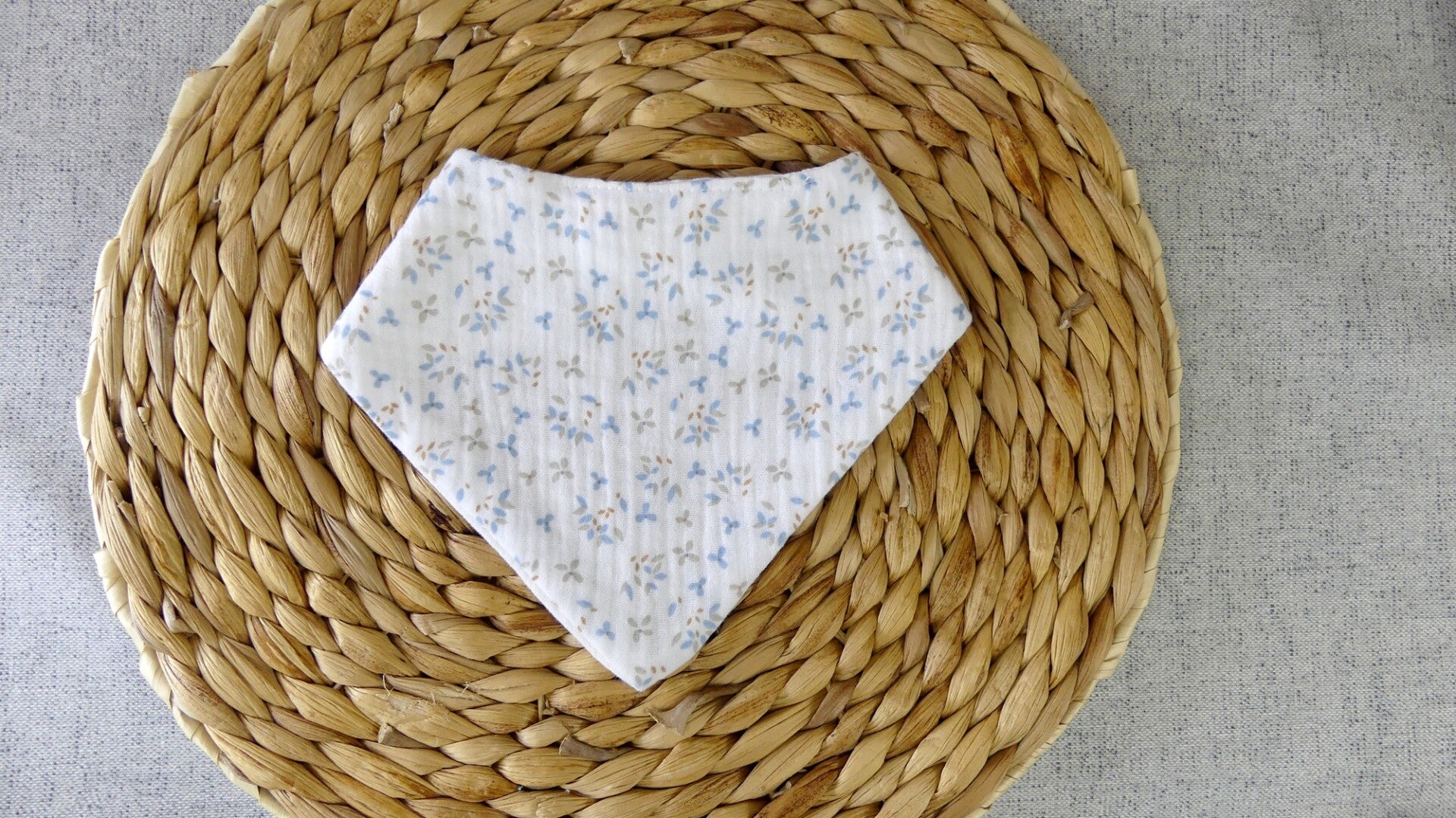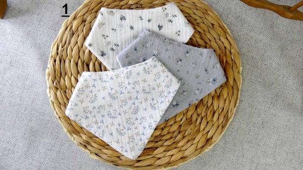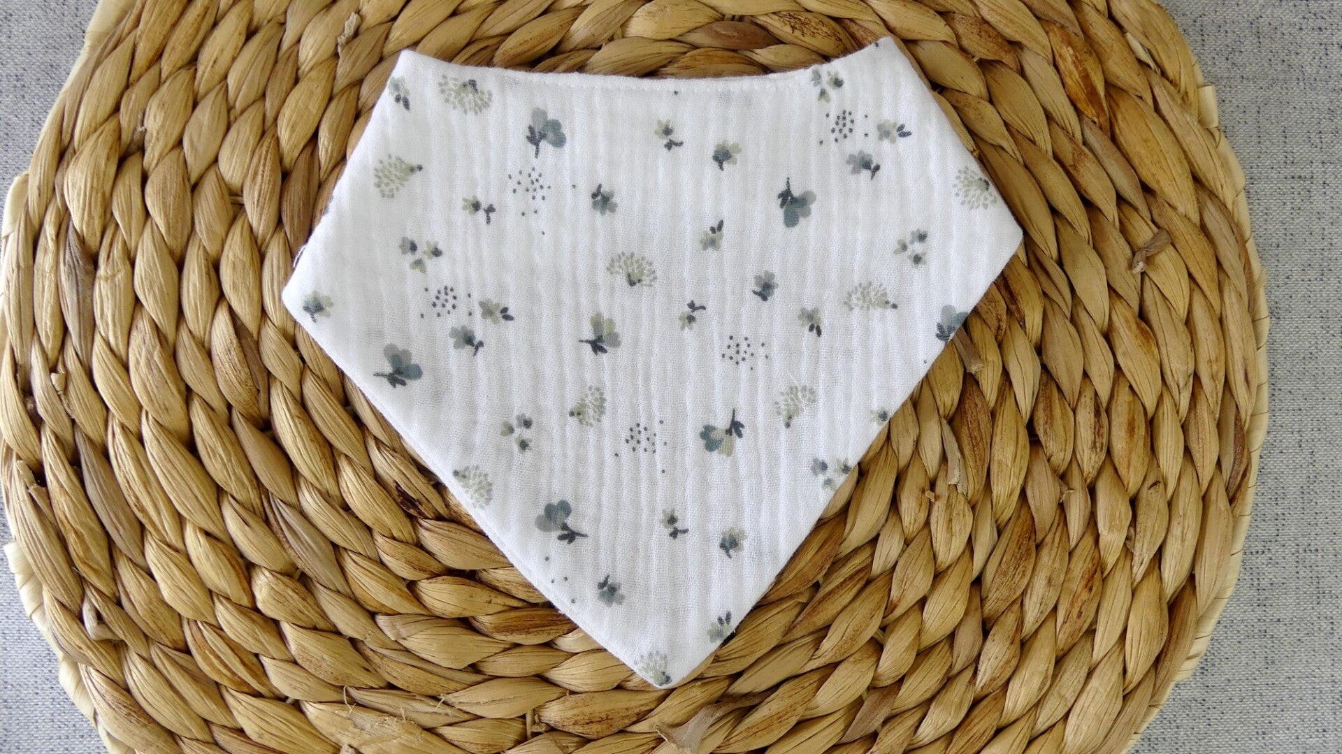 Ce bavoir / bandana réalisé en 100 % double gaze de coton (recto / verso).