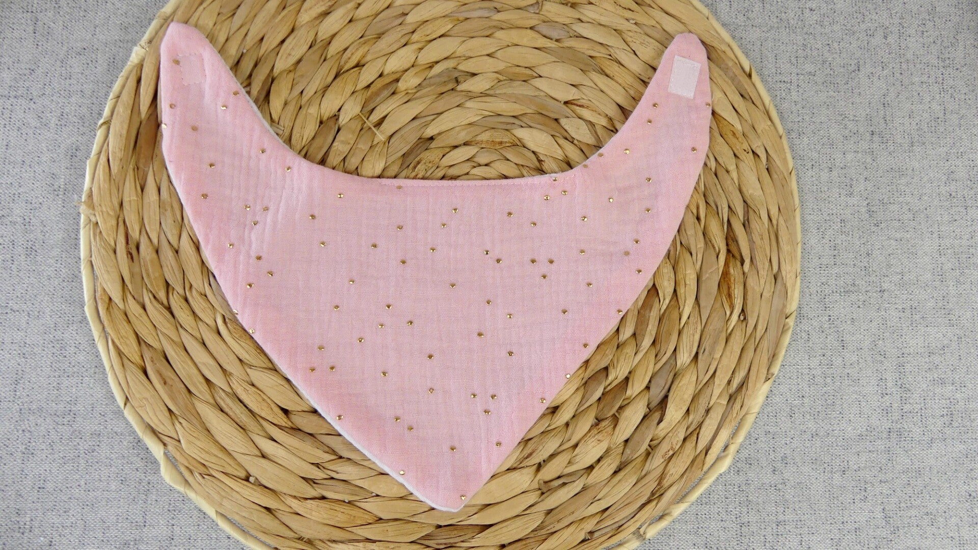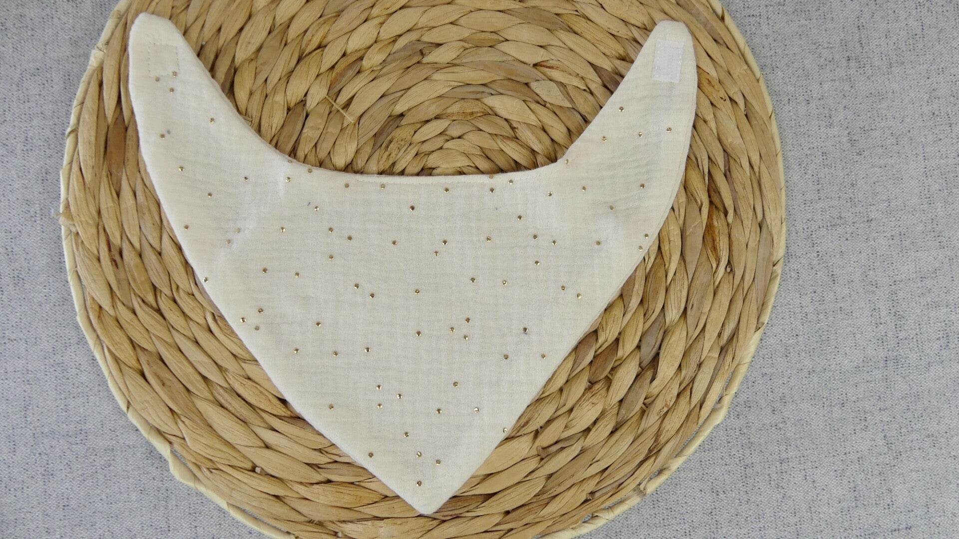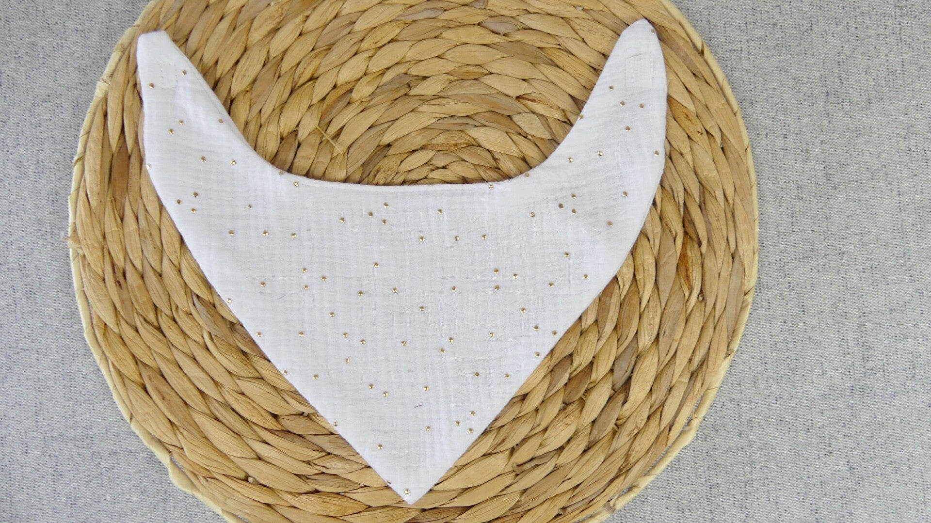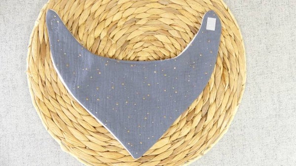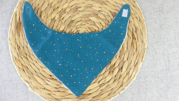 Bavoir bandana léger double gaze de coton pois dorés