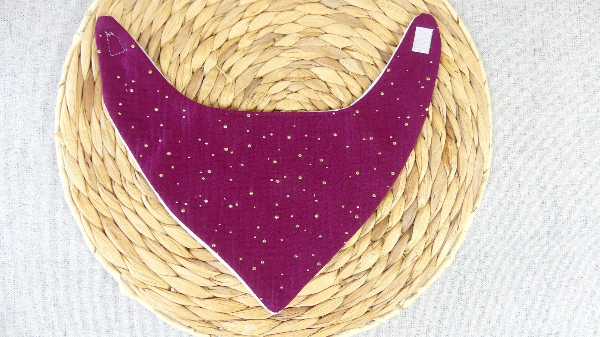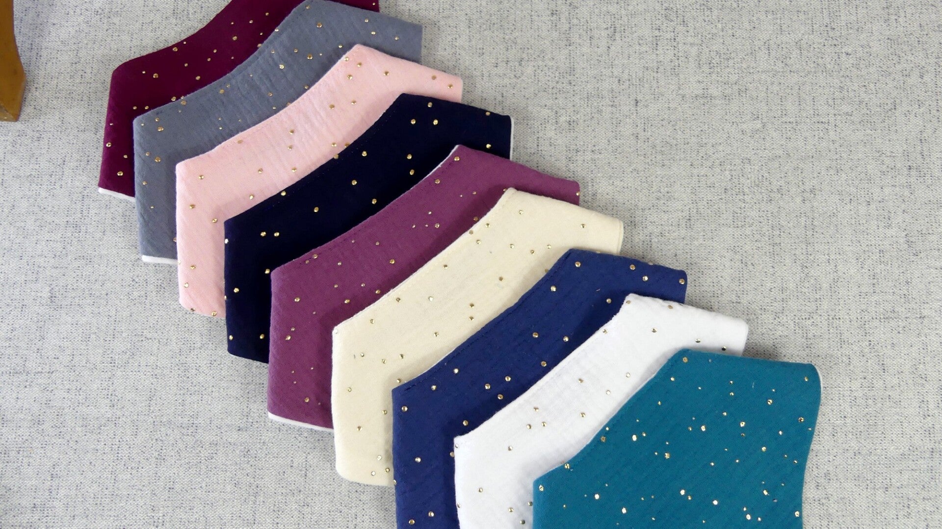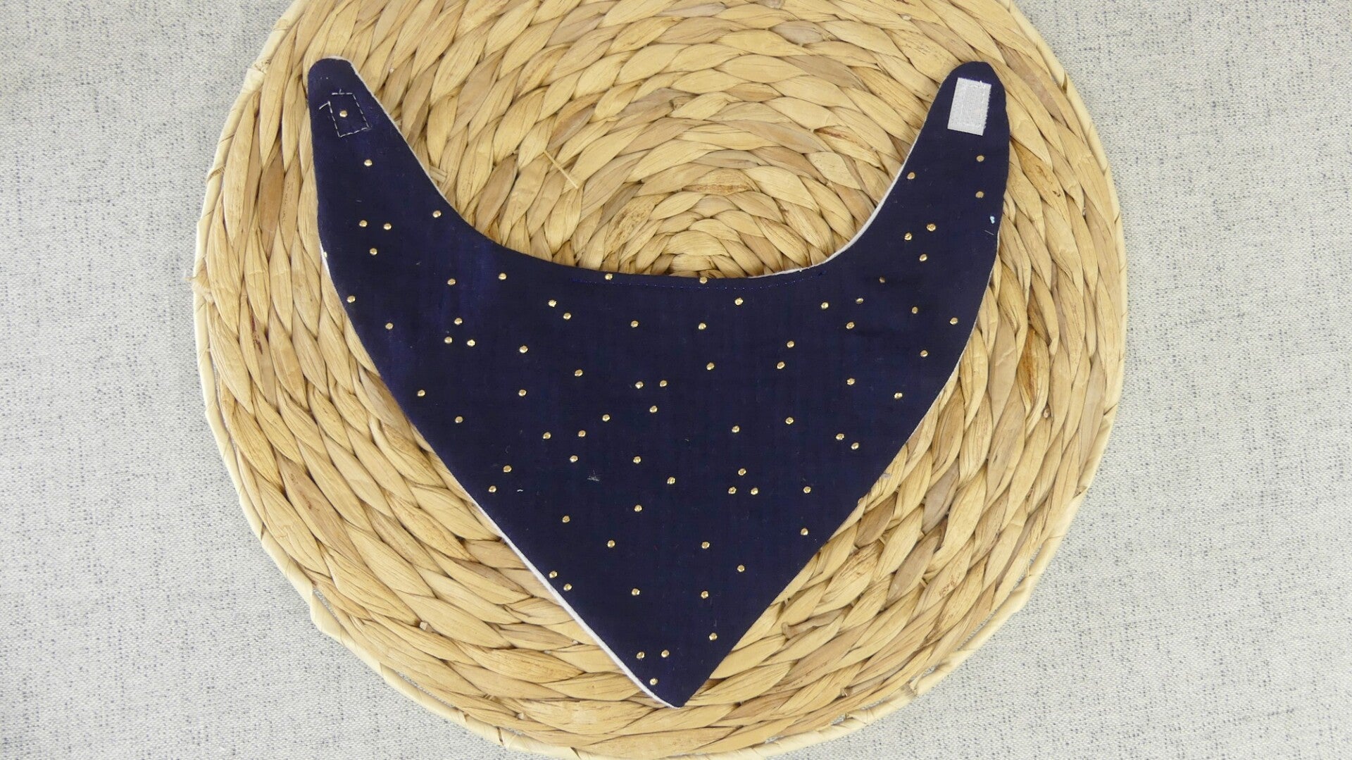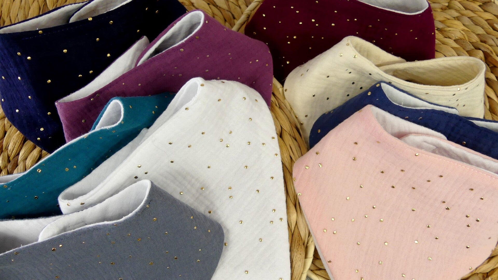 Bavoir bandana léger double gaze de coton pois dorés
