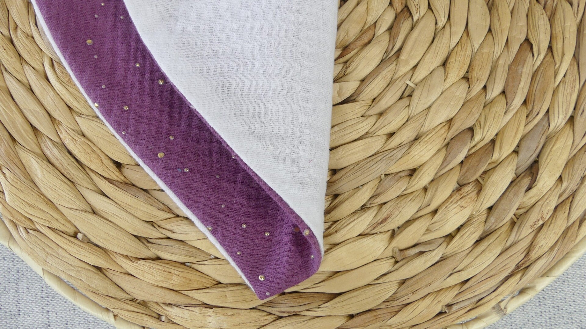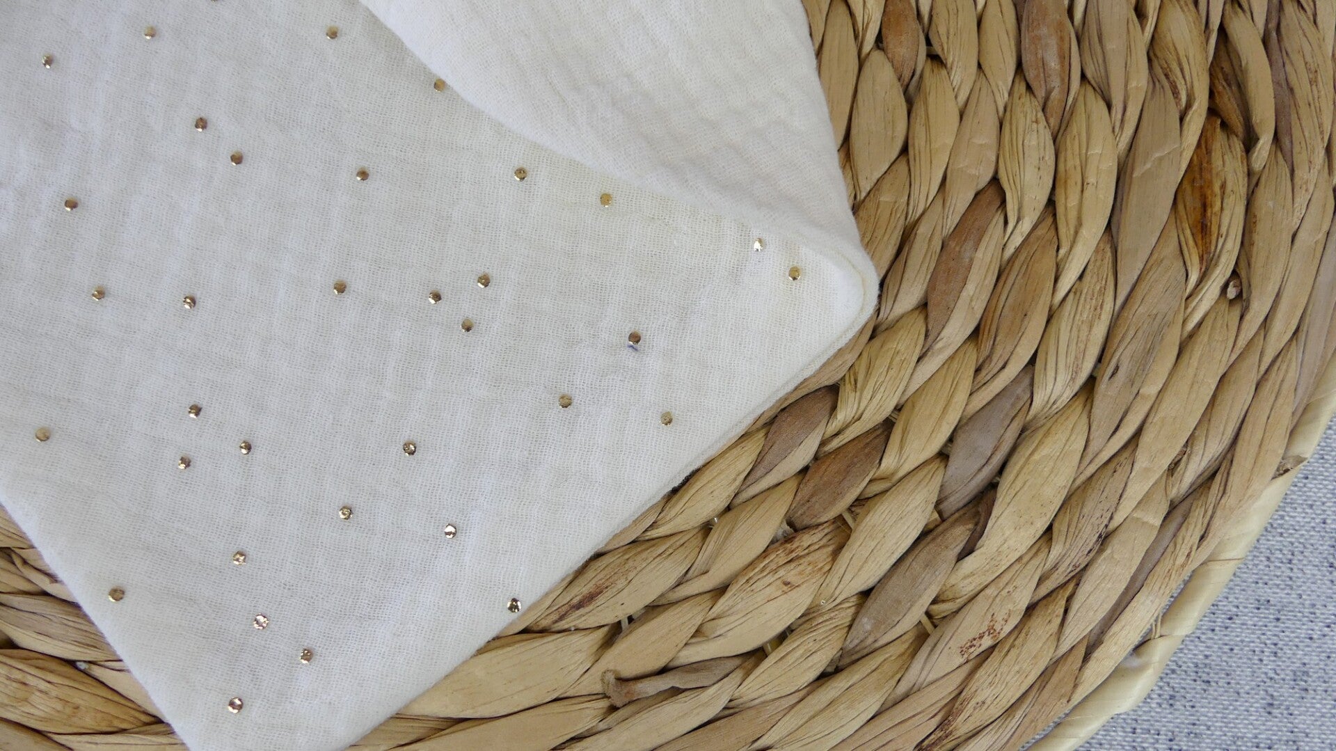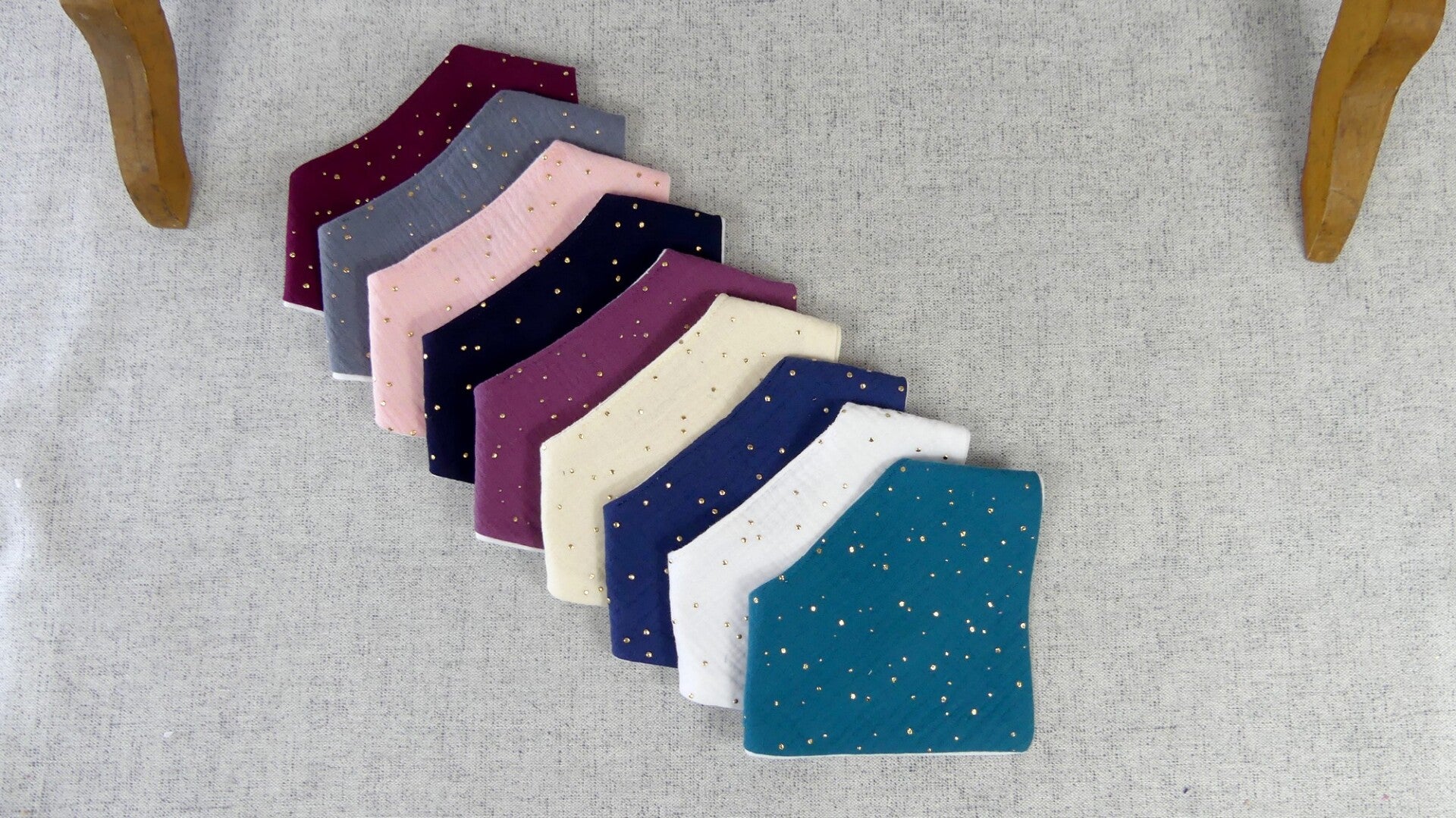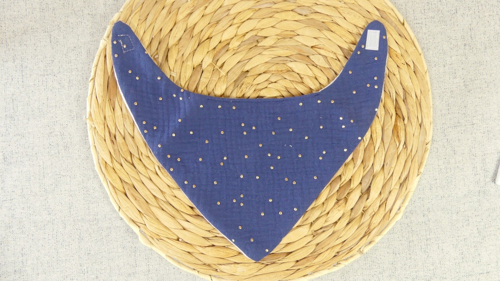 Bavoir bandana léger double gaze de coton pois dorés