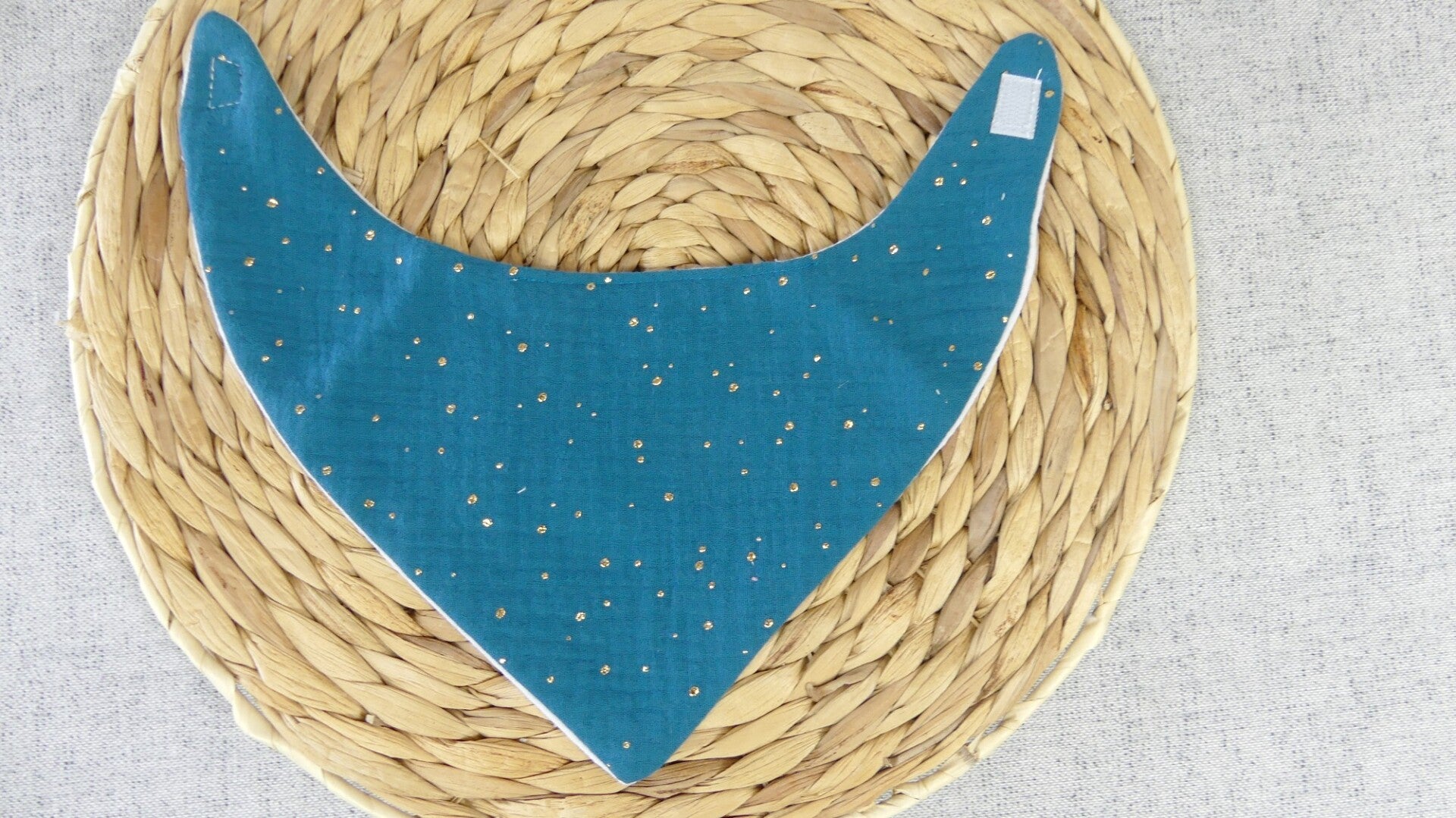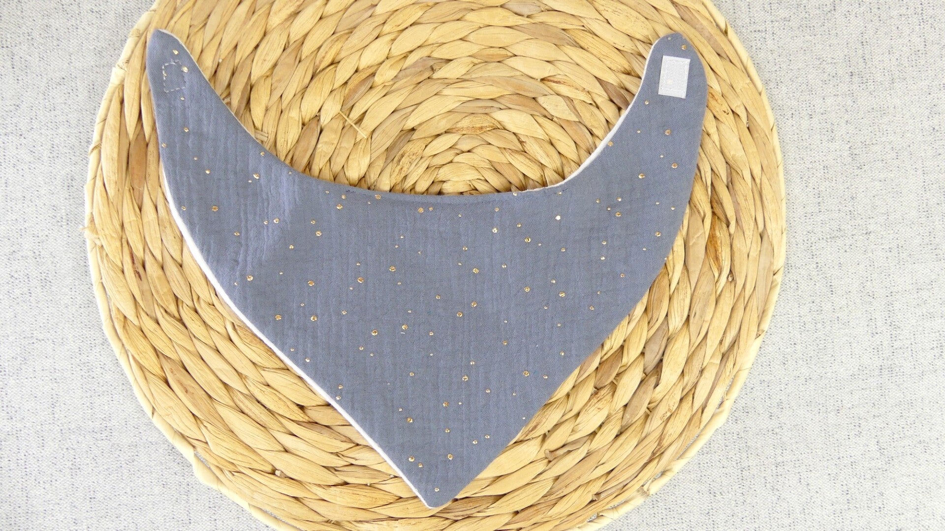 Ce bavoir / bandana réalisé en 100 % double gaze de coton (recto / verso).