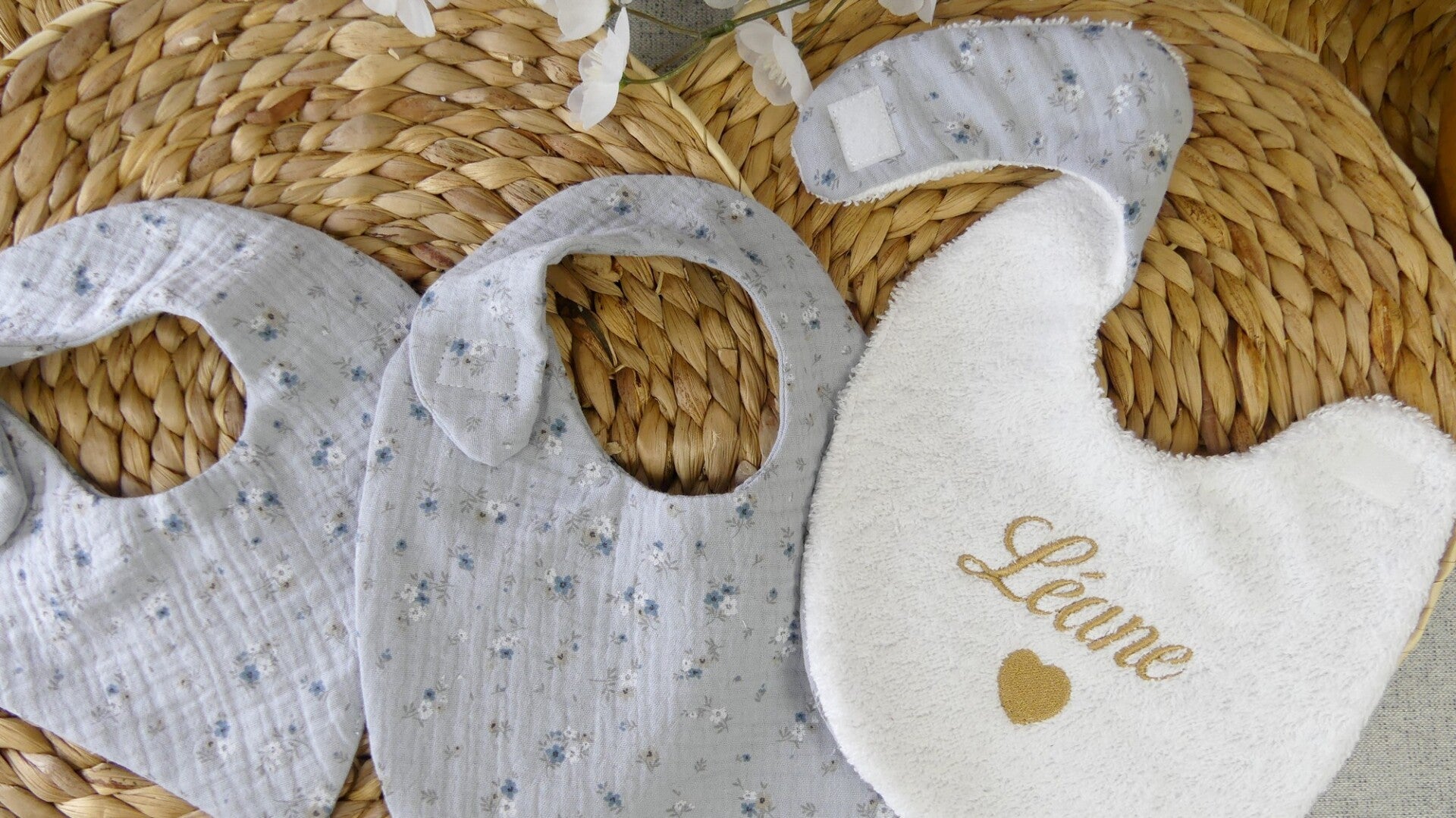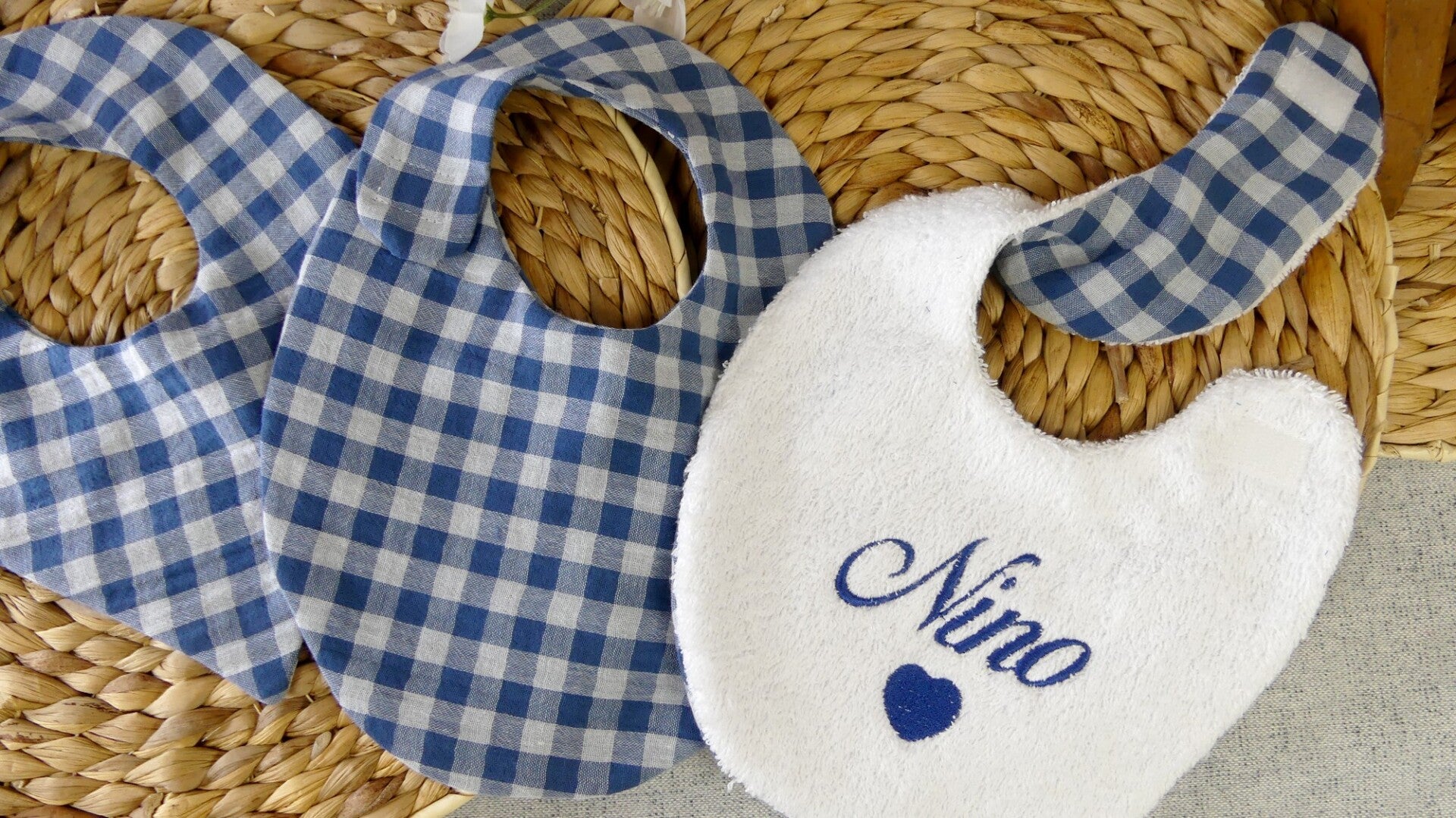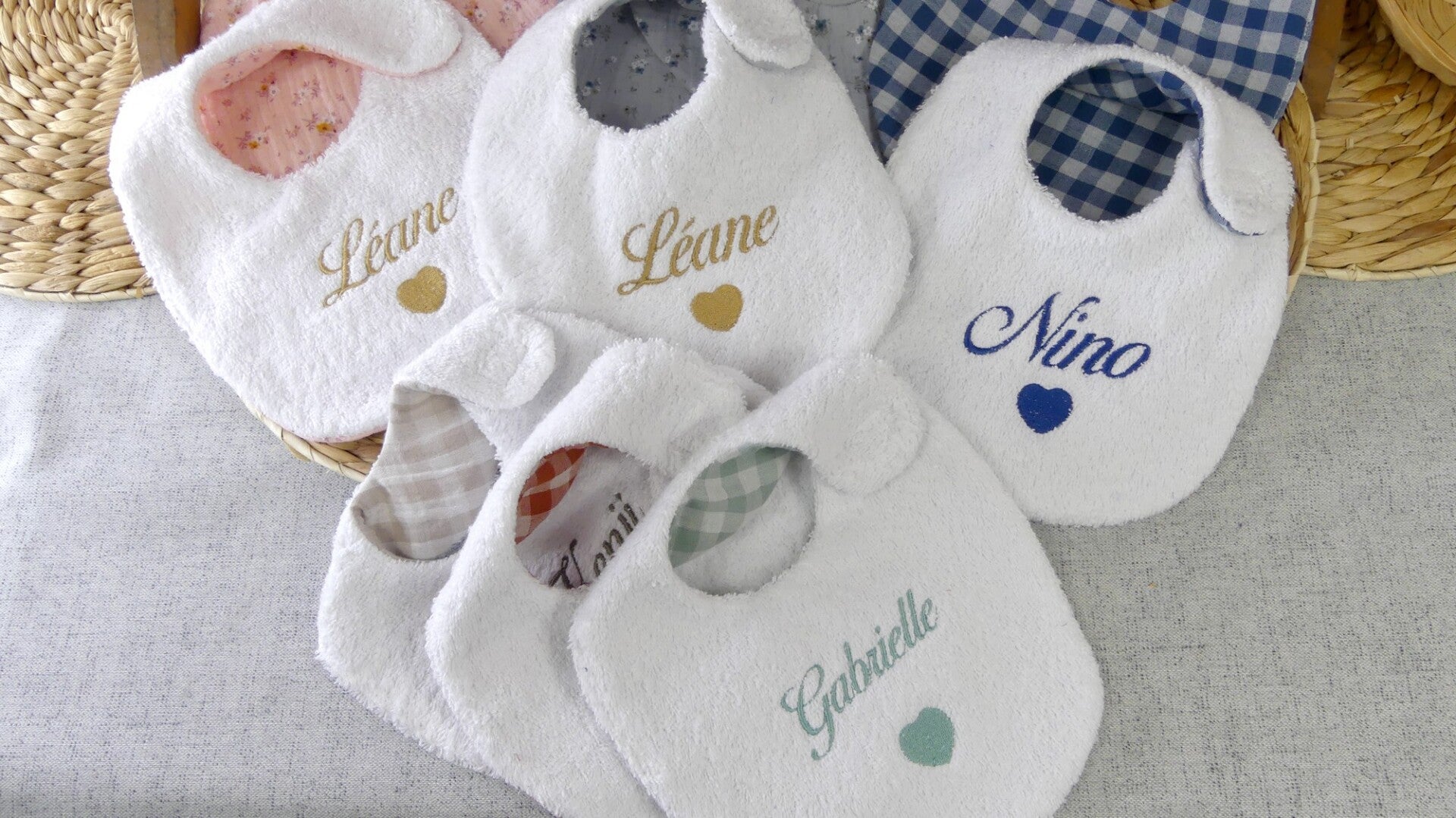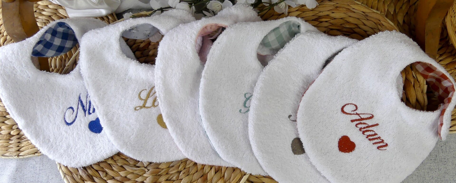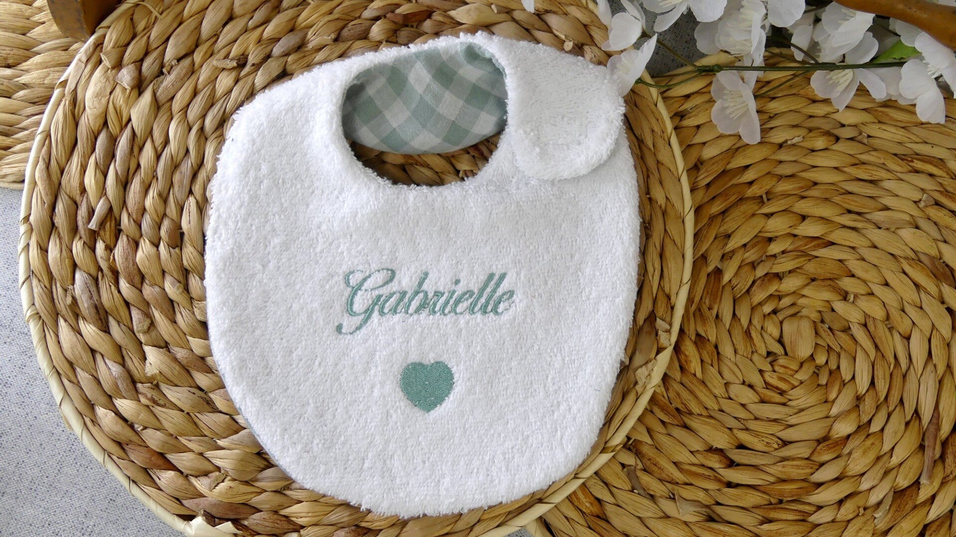 La broderie est réalisée de manière à ne pas être visible au dos du bavoir.