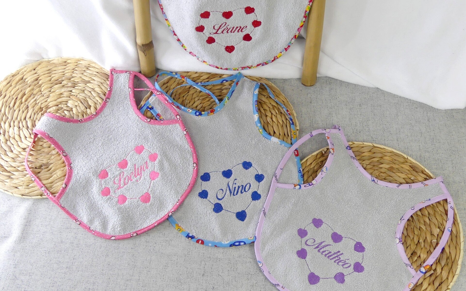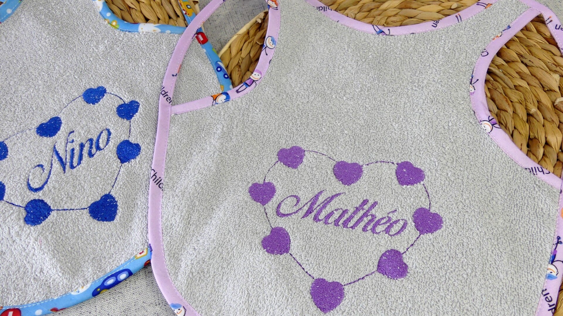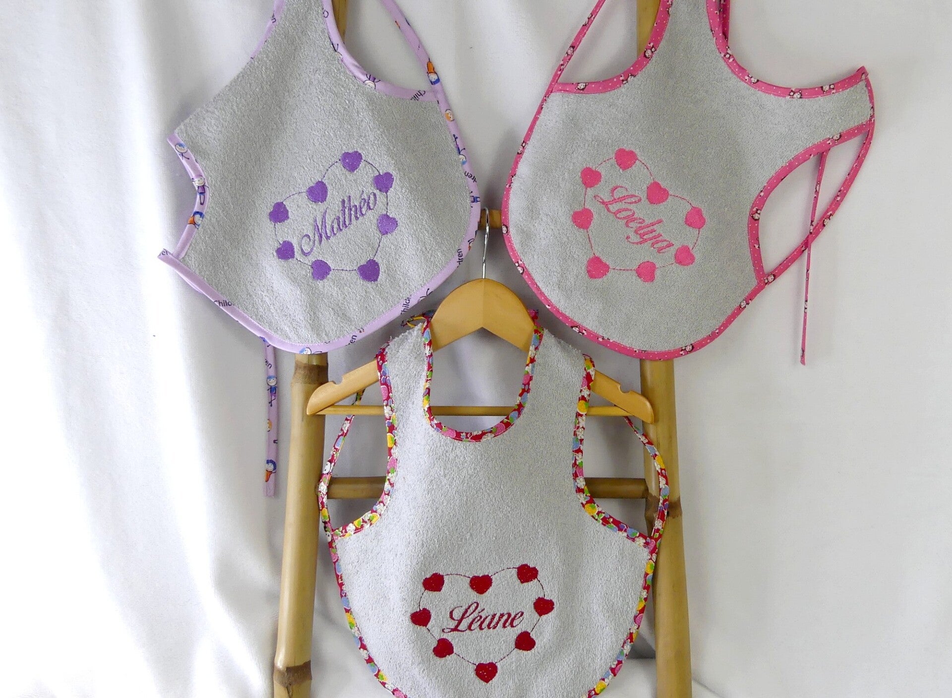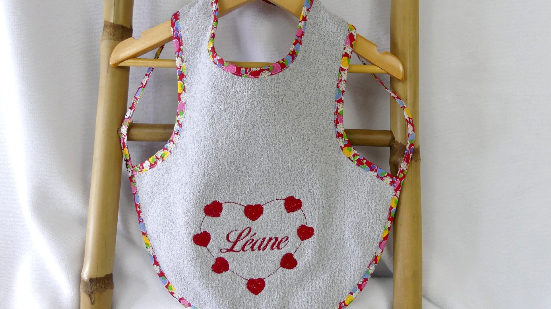 Bavoir Tablier personnalisé brodé prénom et coeurs