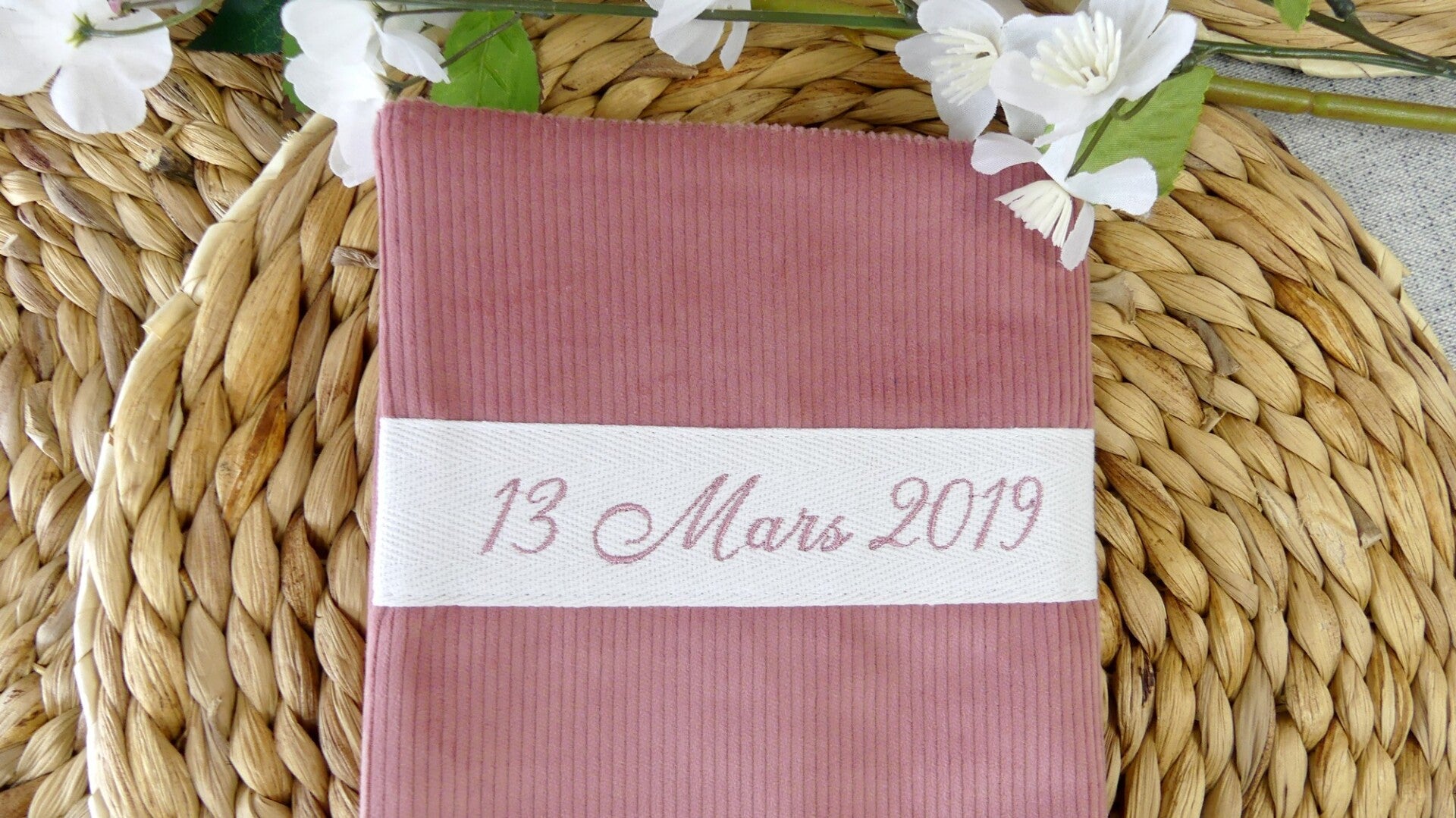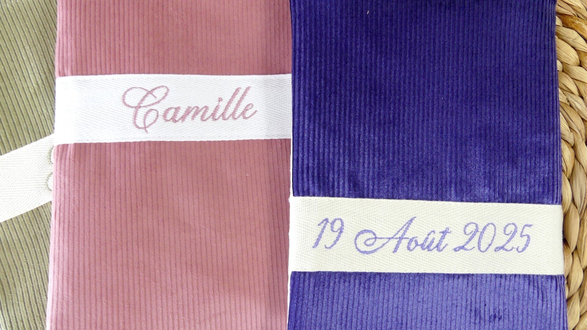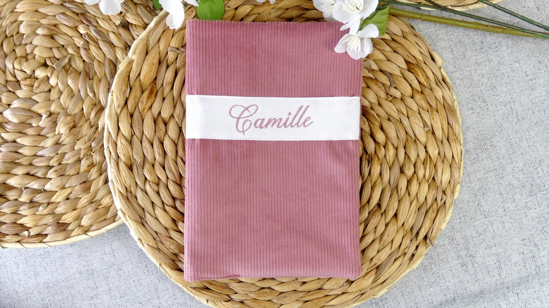 Carnet de santé Velours broderie sur bande Sergé Coton