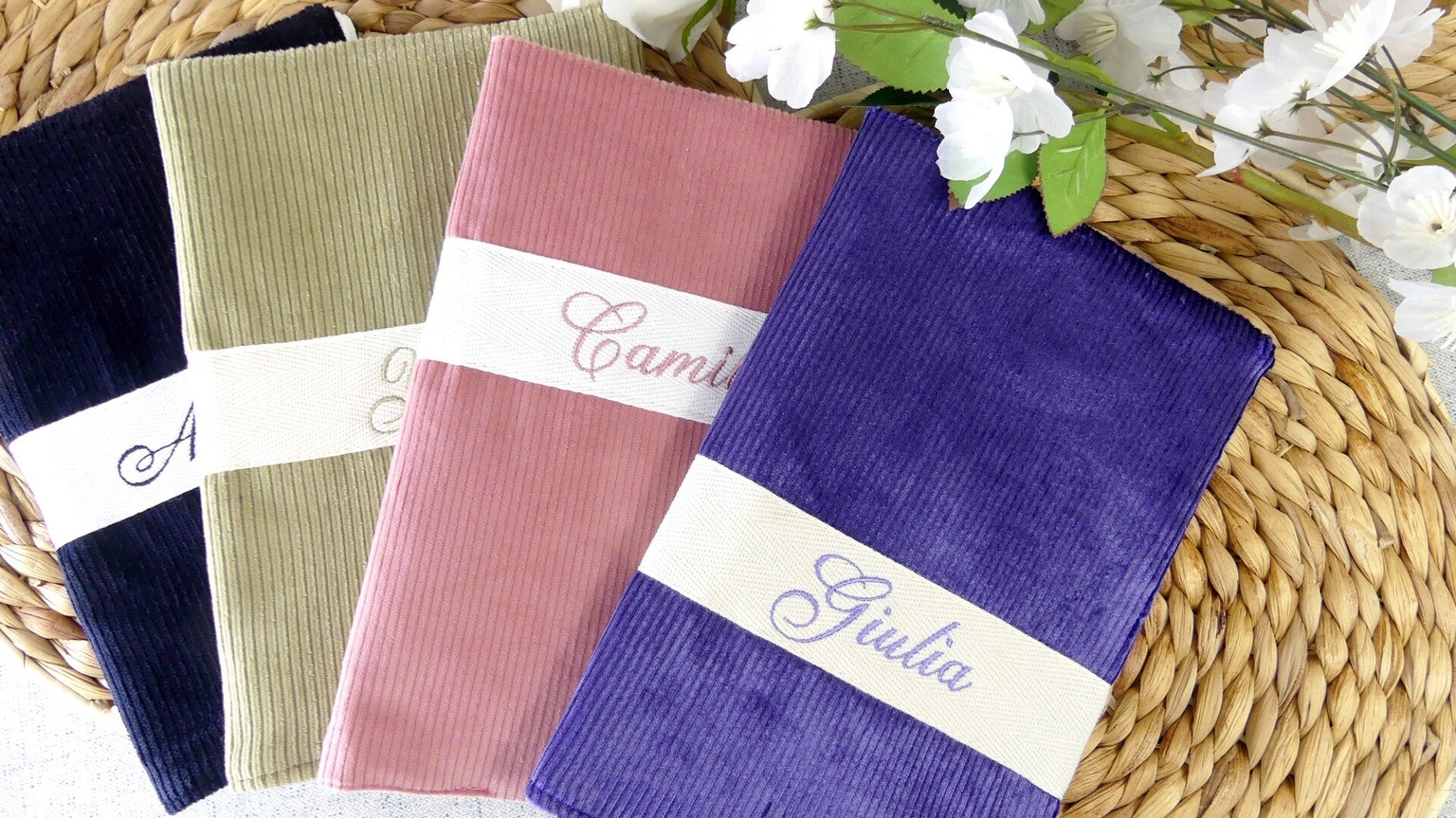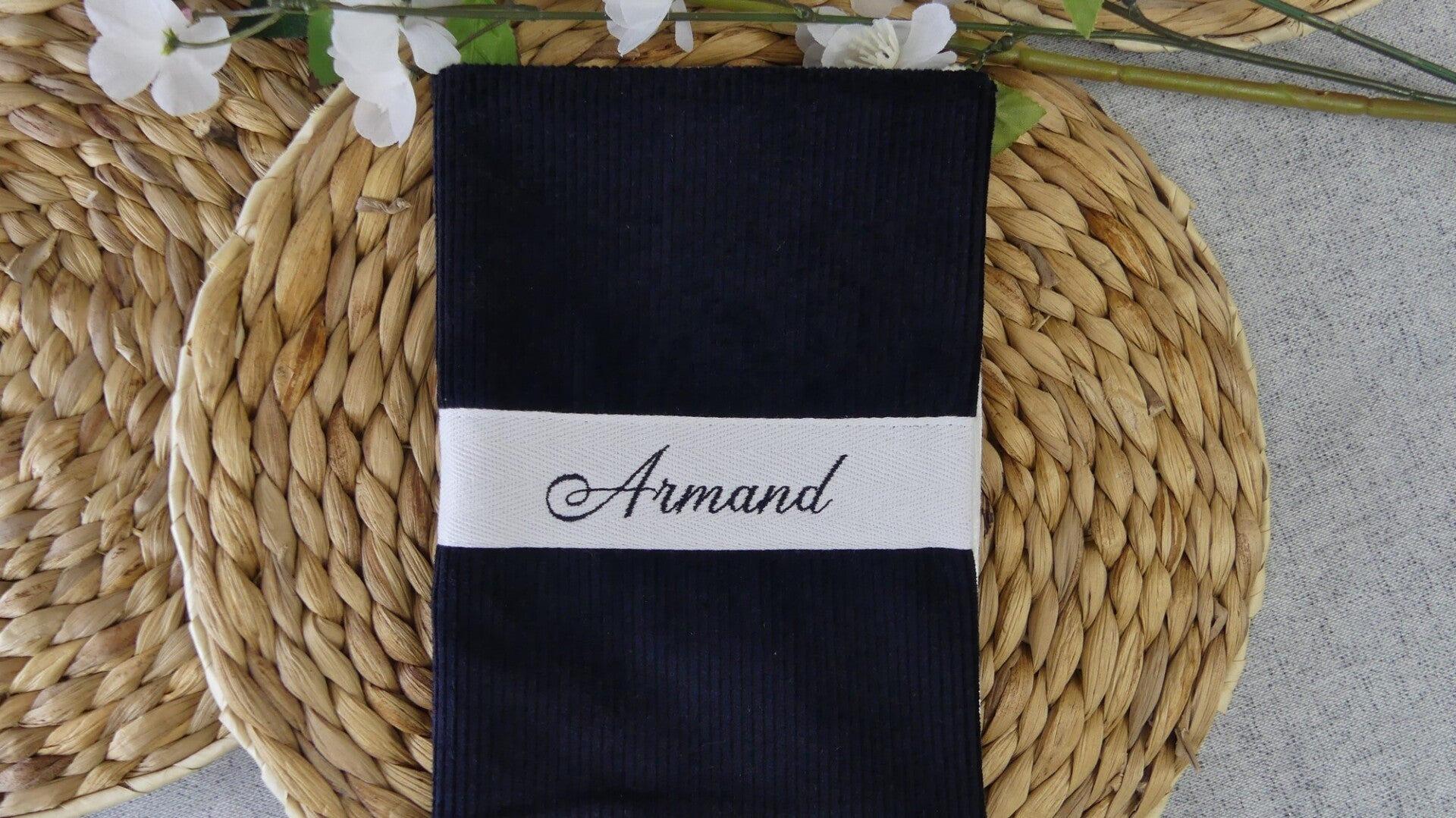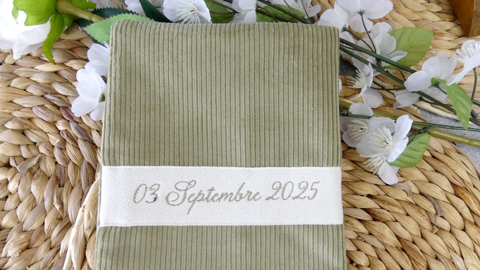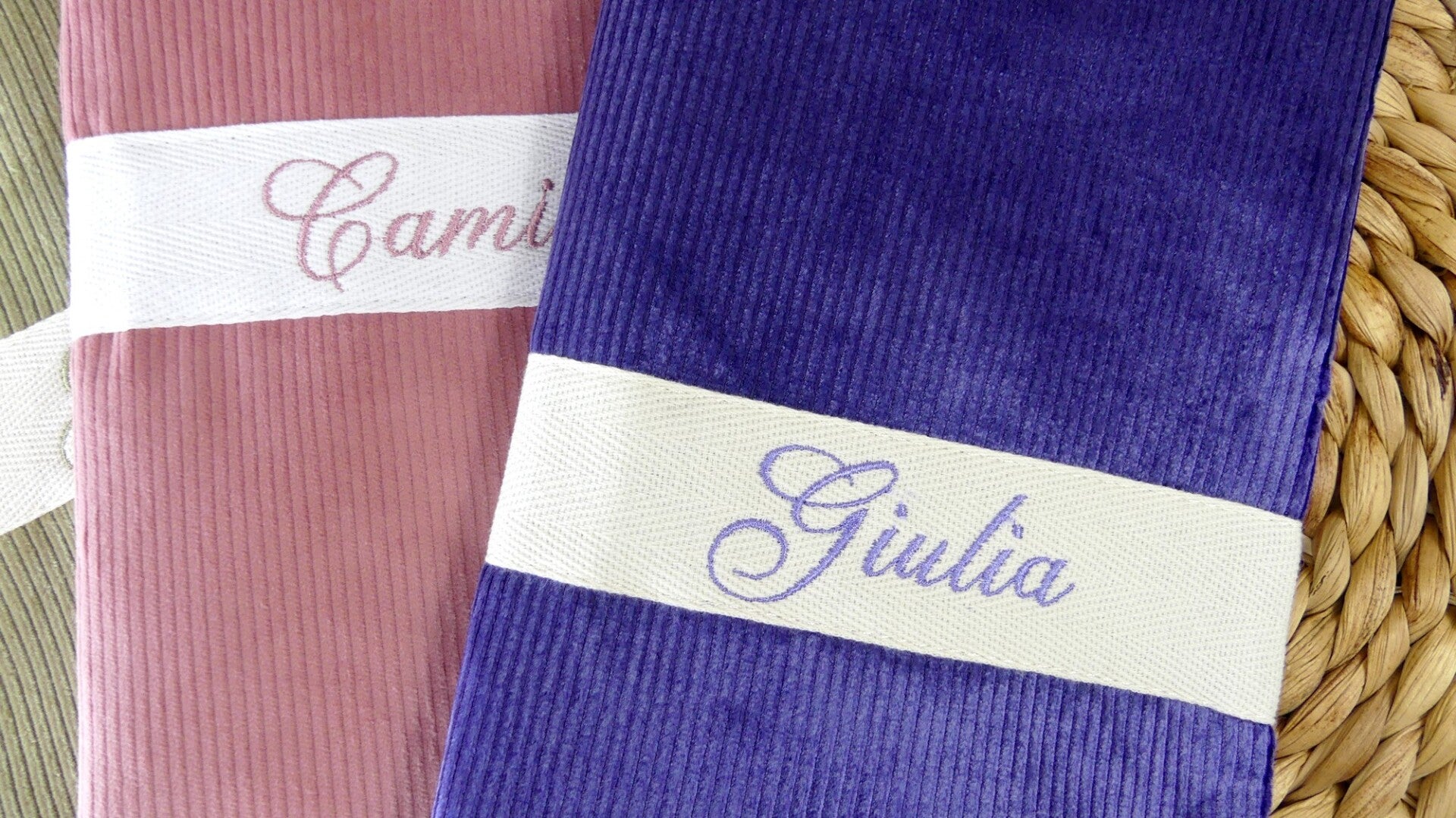 Carnet de santé Velours broderie sur bande Sergé Coton