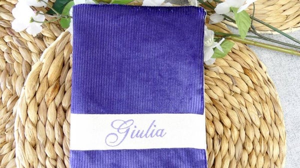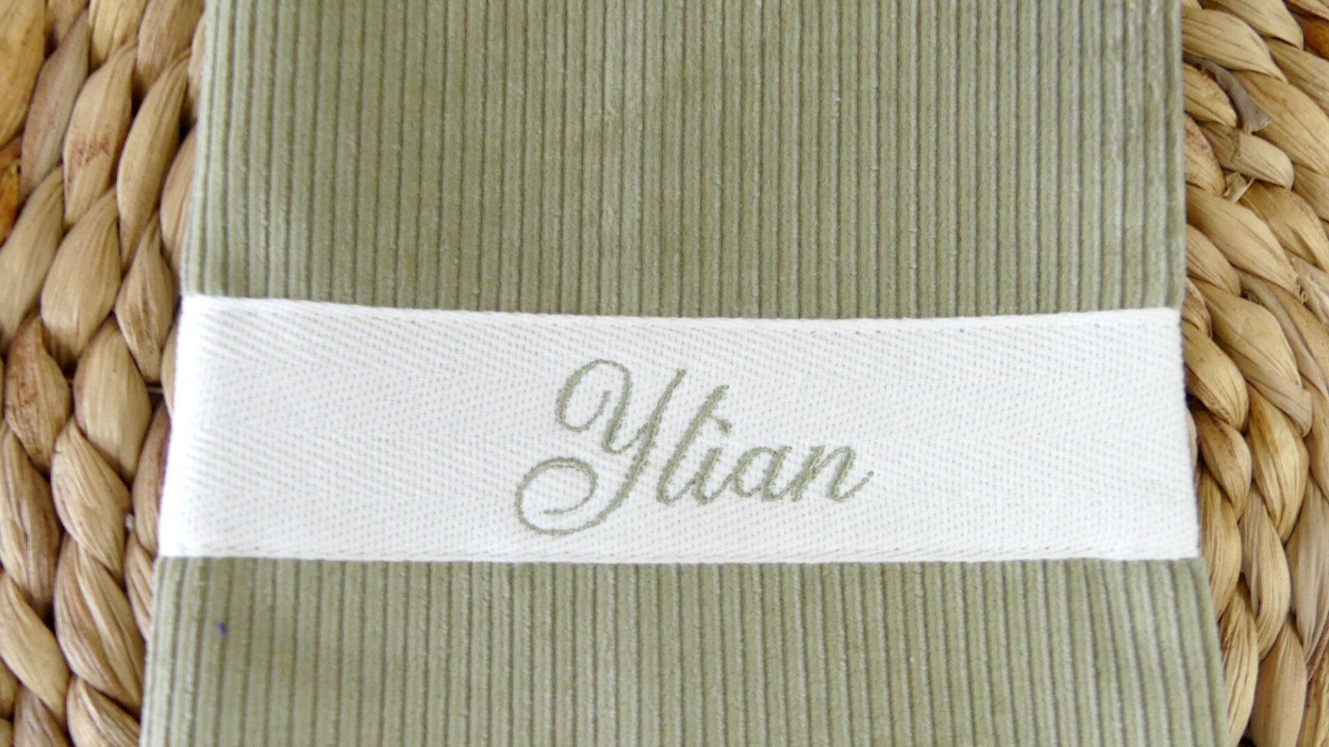 Un cadeau unique personnalisé en broderie avec le prénom de l'enfant et la date de naissance.