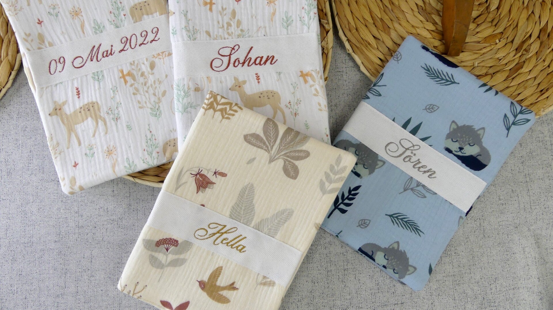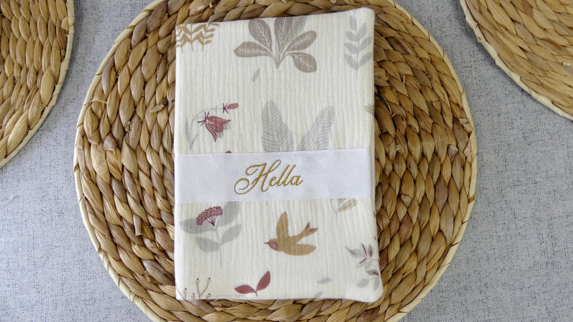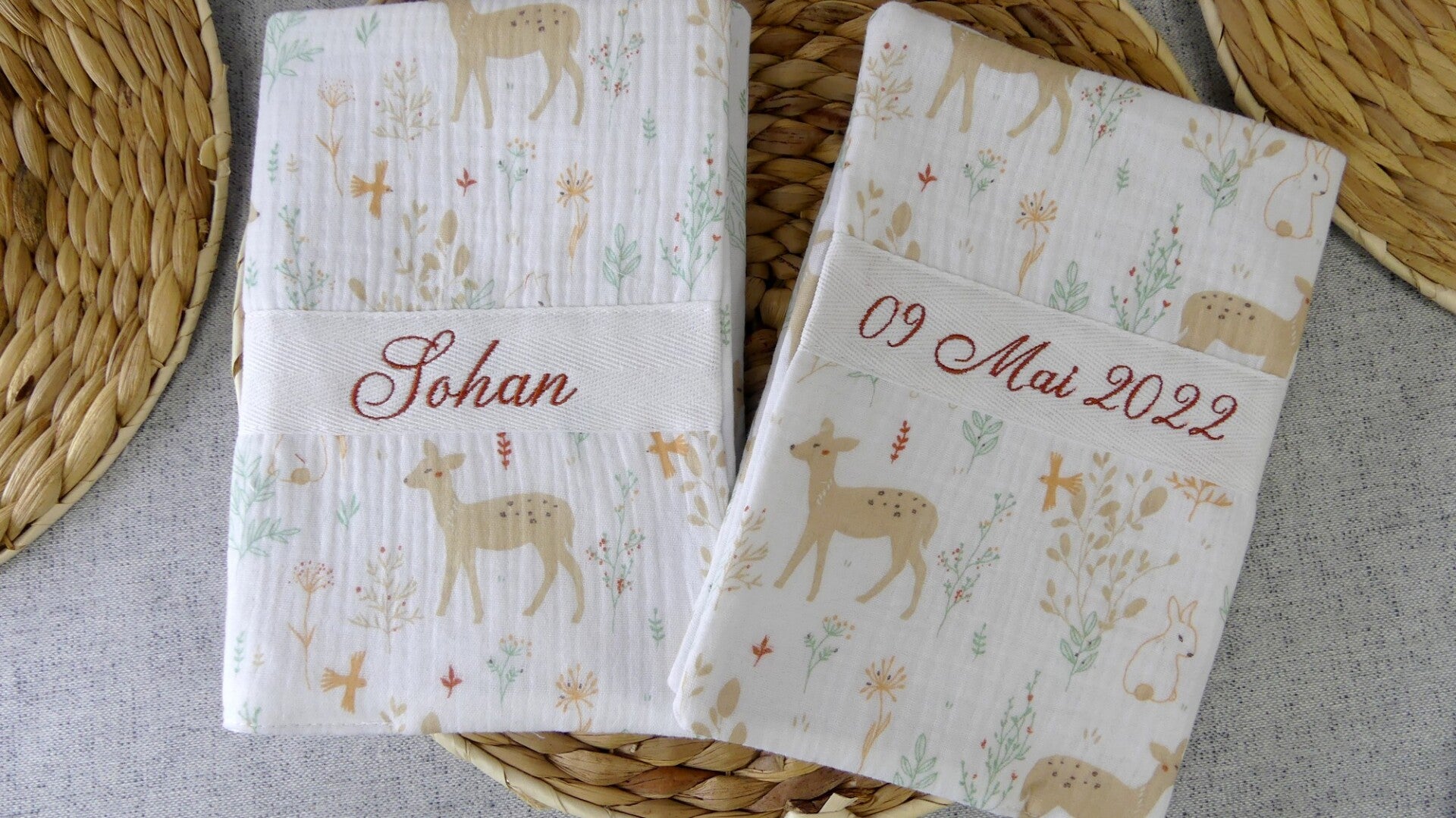 Carnet de santé Double gaze imprimé broderie sur bande Coton