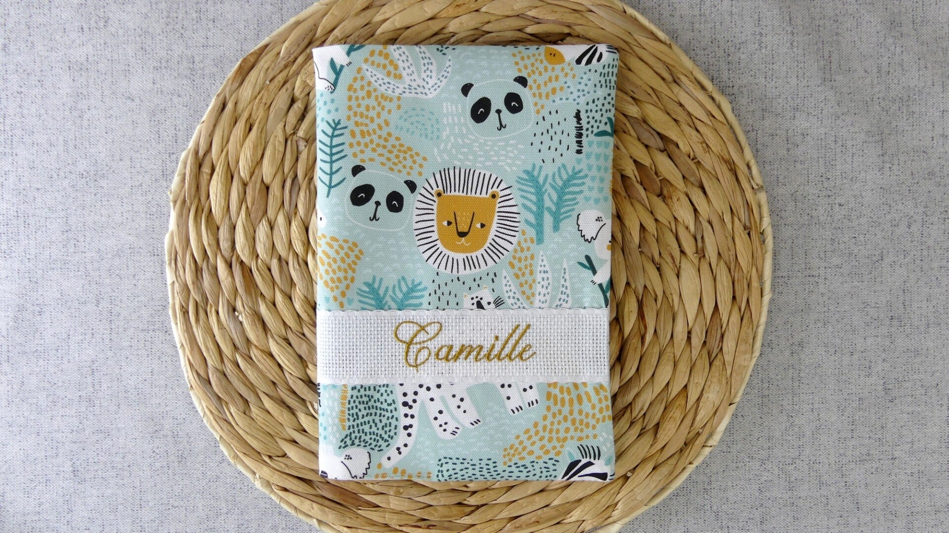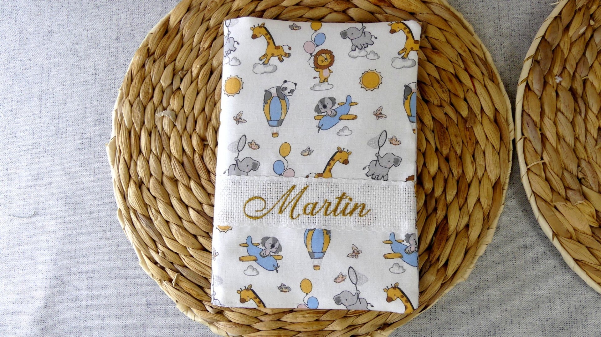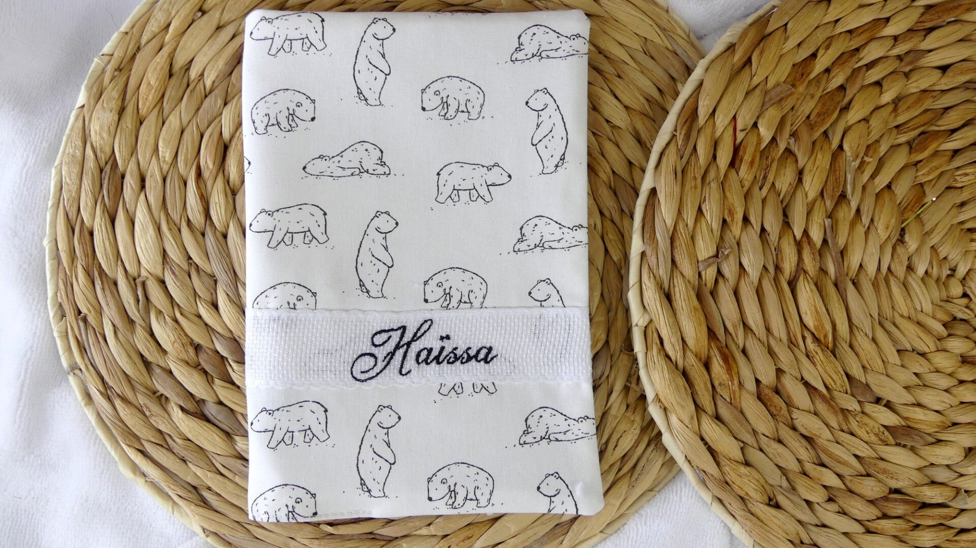 Carnet de santé motif enfant broderie sur bande AIDA Coton