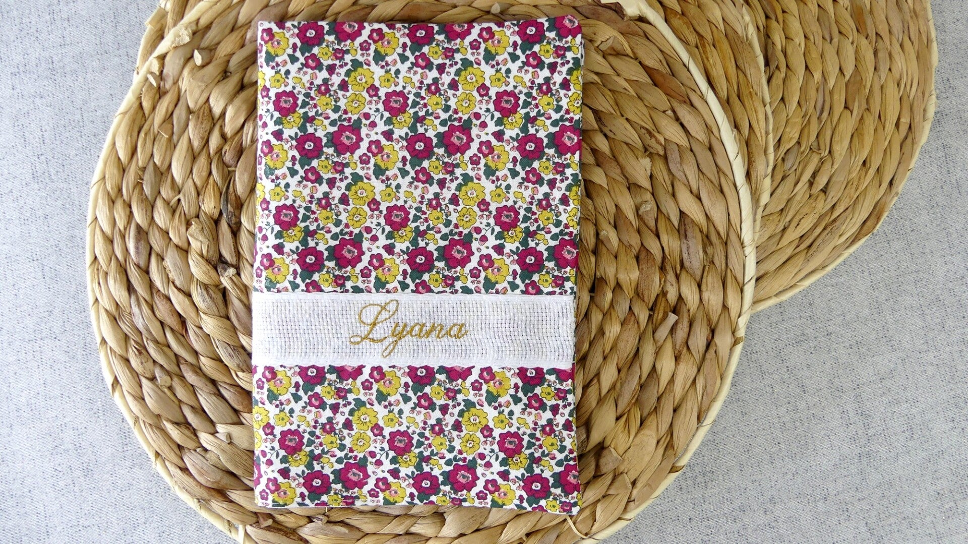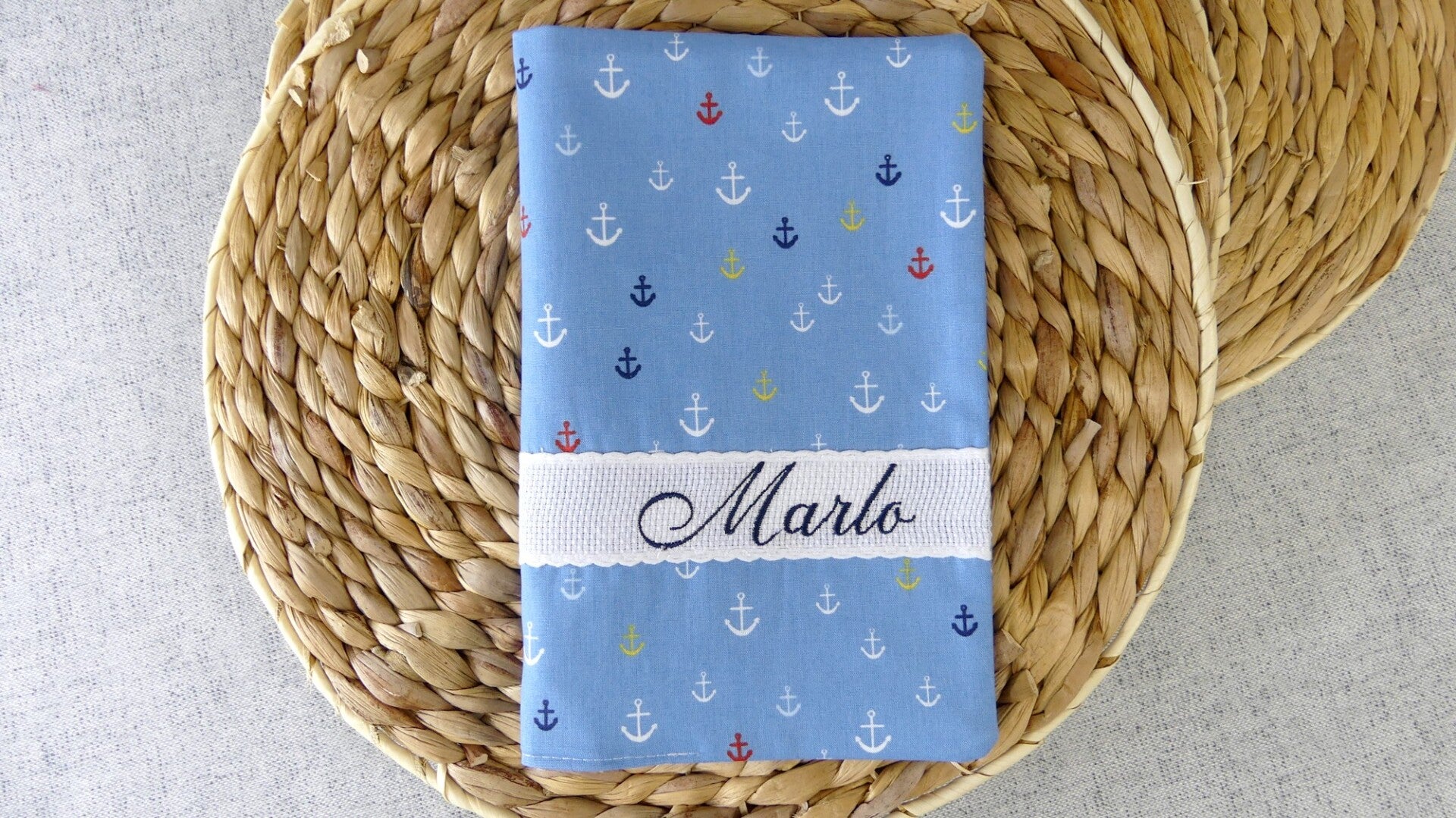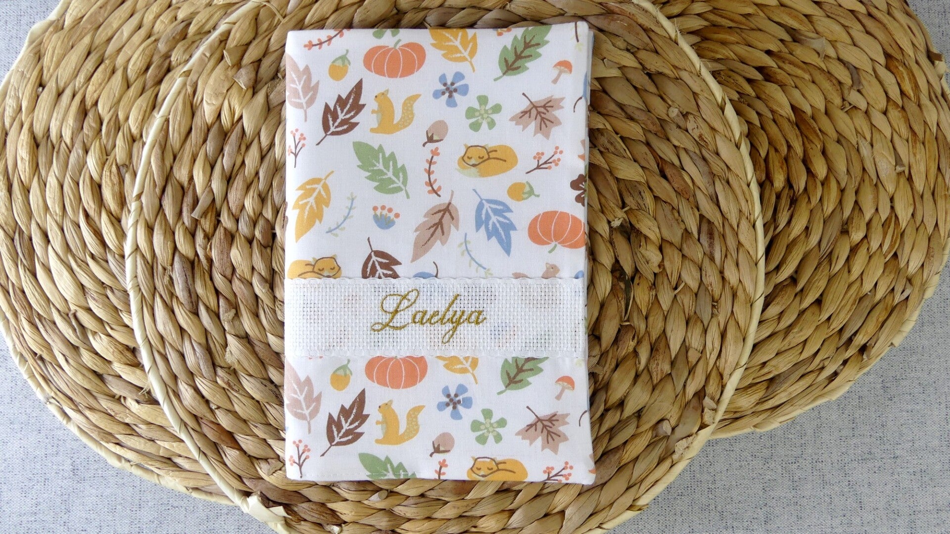 Carnet de santé motif enfant broderie sur bande AIDA Coton