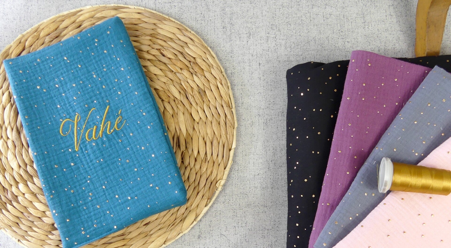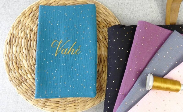 Carnet de santé double gaze pois dorés broderie dorée